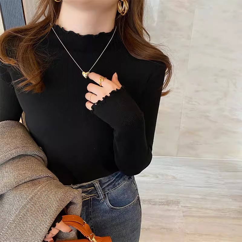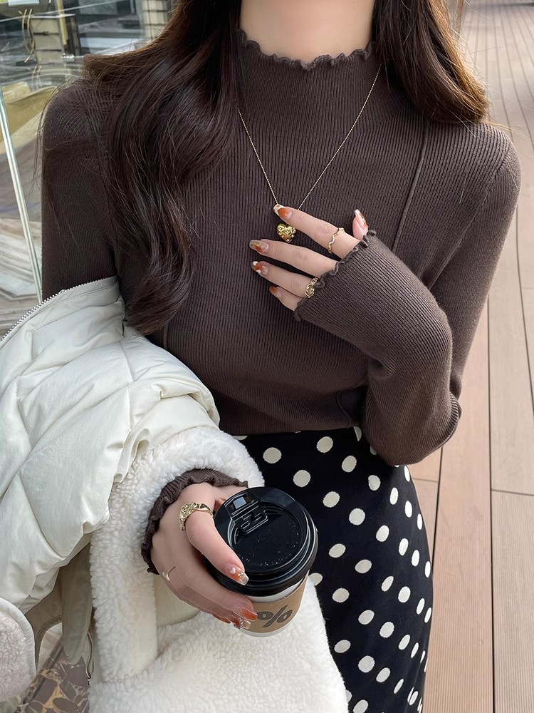 플러스 사이즈, 플러스 사이즈, 여성용 스타일리시 이너 레이어드 셔츠, 하프 터틀넥 스웨터, 뚱뚱한 mm 가을 겨울용 니트 스웨터 탑