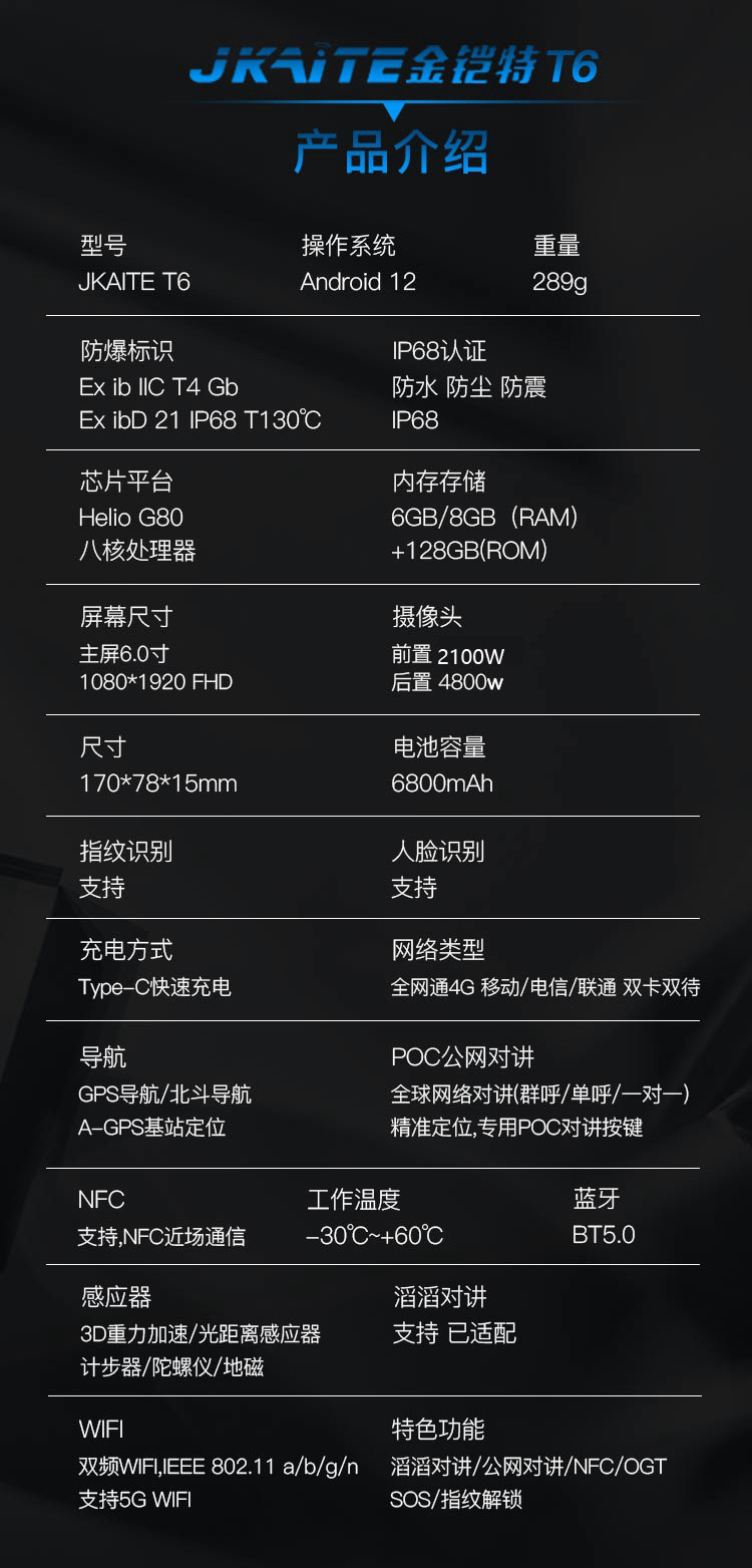 JKAITE 골드 아머 T6 폭발 방지 스마트 폰 화학 공장 석유 가스 EX 3 방지 T4 공공 네트워크 인터콤 NFC스토어 가기