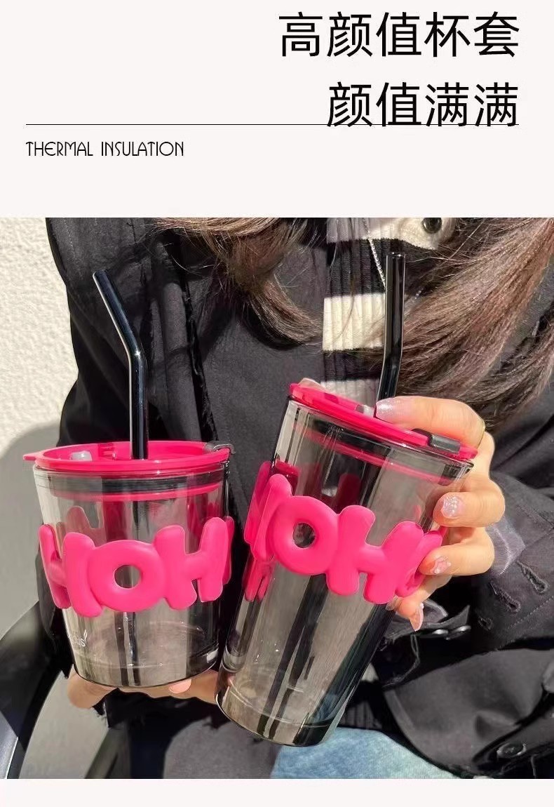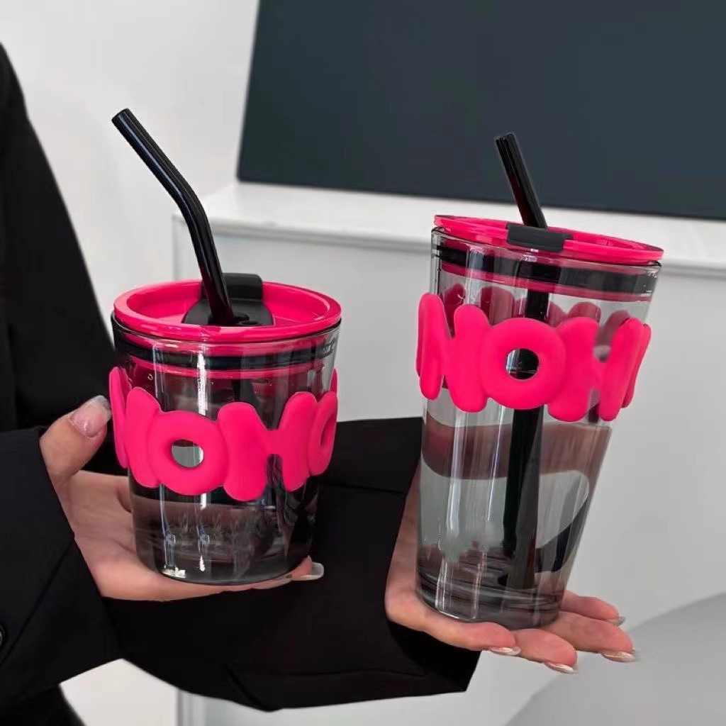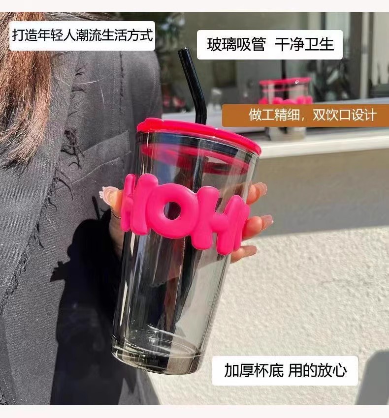 인터넷 연예인 재미있는 편지 대나무 유리 컵 밀짚 물 컵 Ins 커피 컵 다채로운 상점 축하 선물 컵