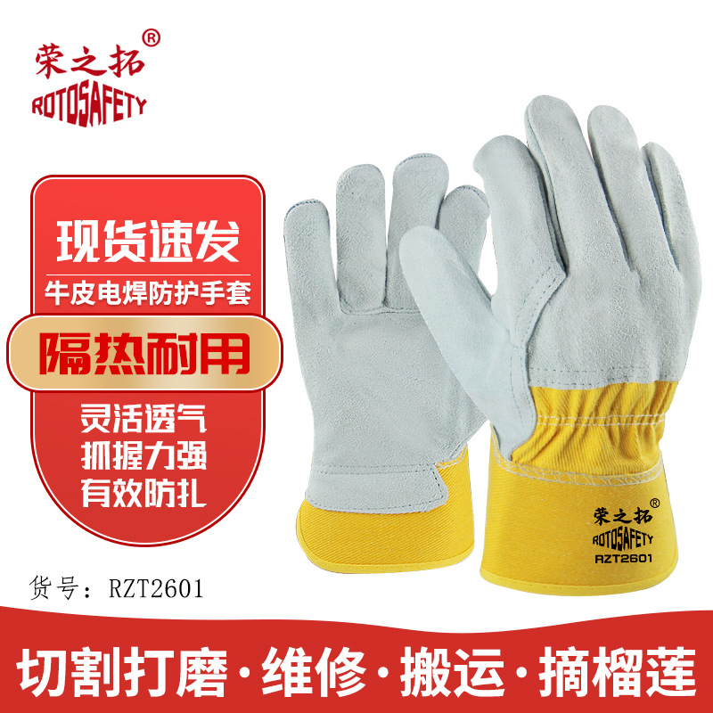 Rongzhituo 세미 가죽 장갑 라인드 용접 장갑 2 층 Cowhide 노동 보호 용접기 보호 장갑 두꺼운 내마모성 장갑스토어 가기