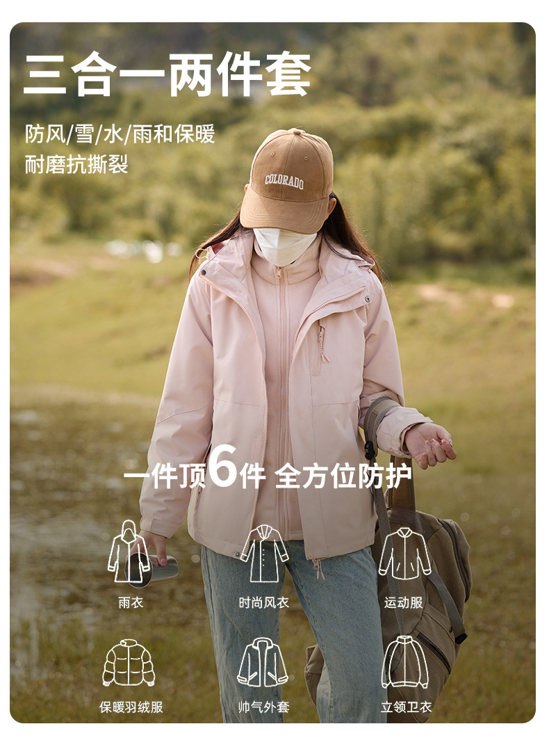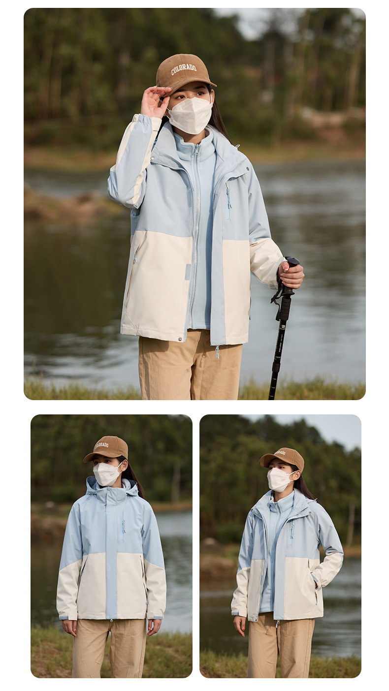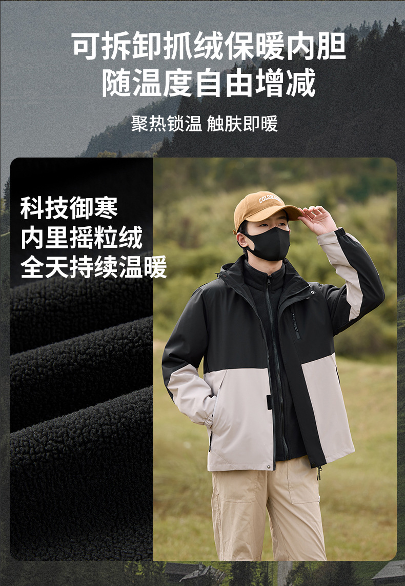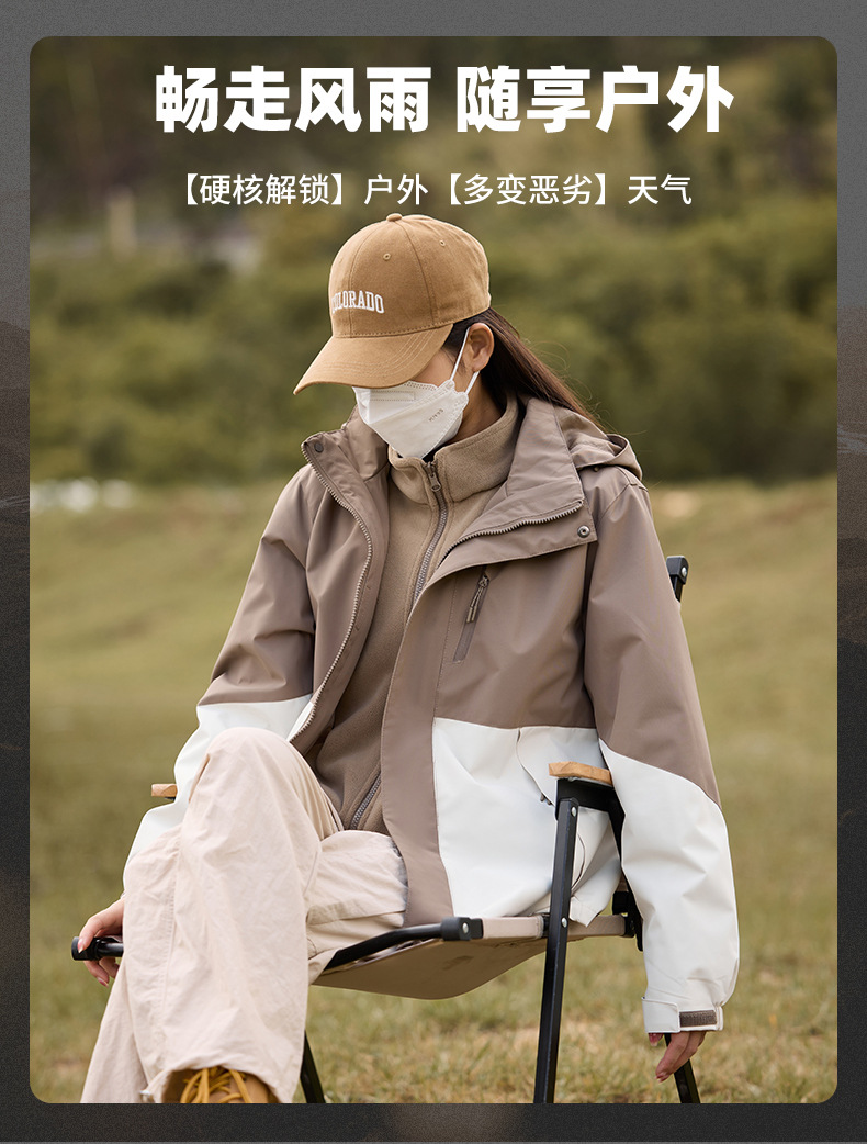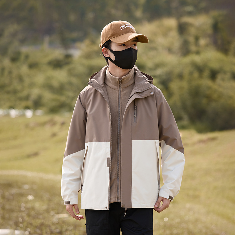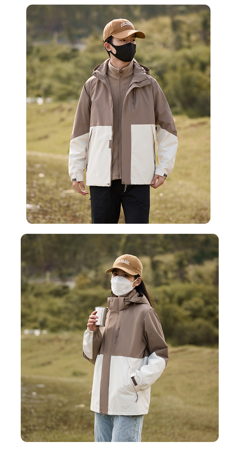 새로운 고급 카멜 스타일 야외 재킷 투피스 세트 커플 탈착식 모자 남성용 방수 및 방풍 재킷스토어 가기