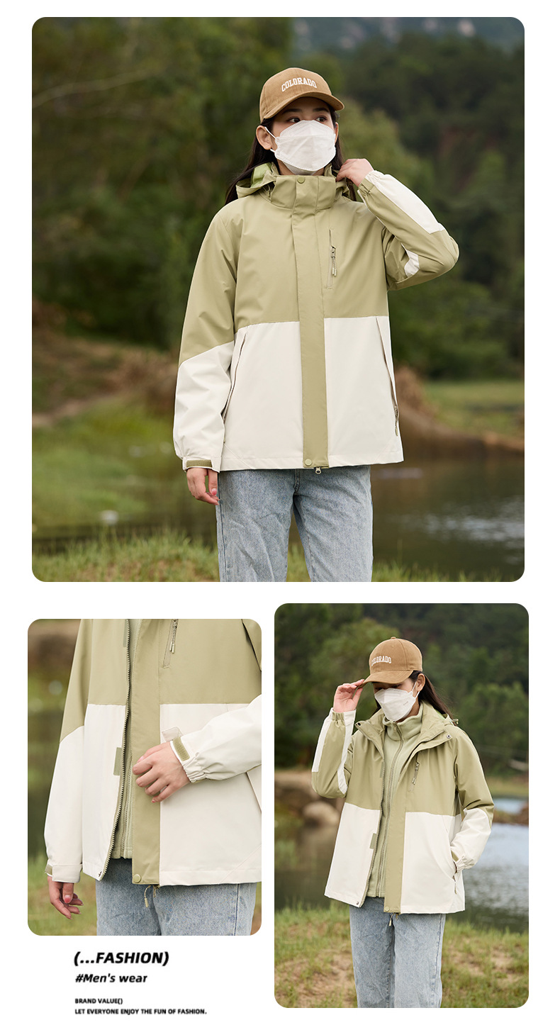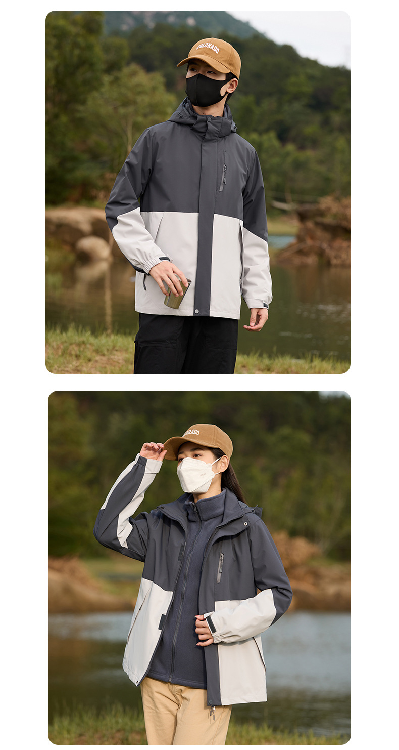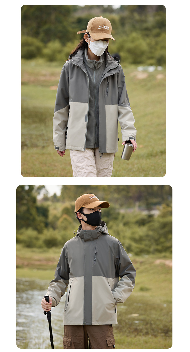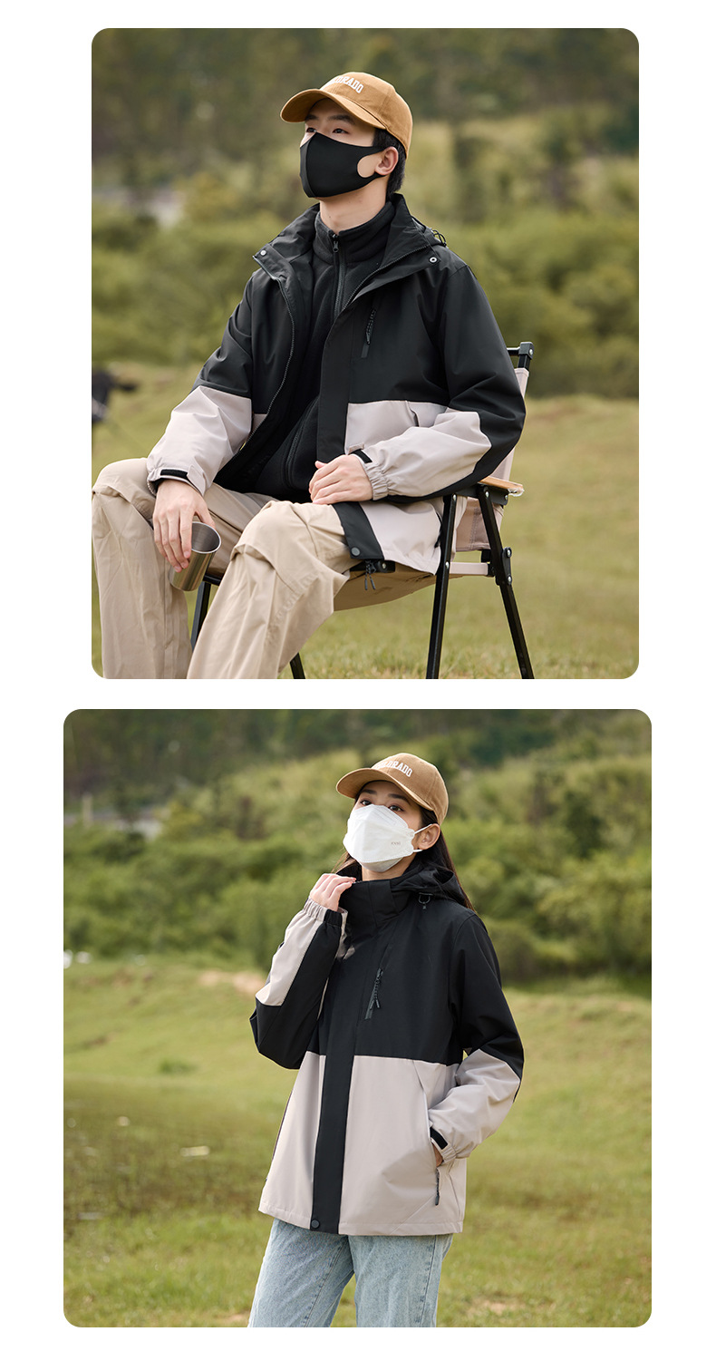 새로운 고급 카멜 스타일 야외 재킷 투피스 세트 커플 탈착식 모자 남성용 방수 및 방풍 재킷