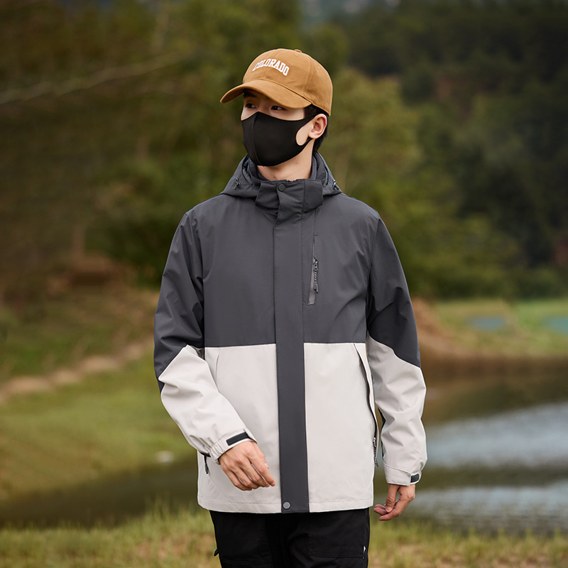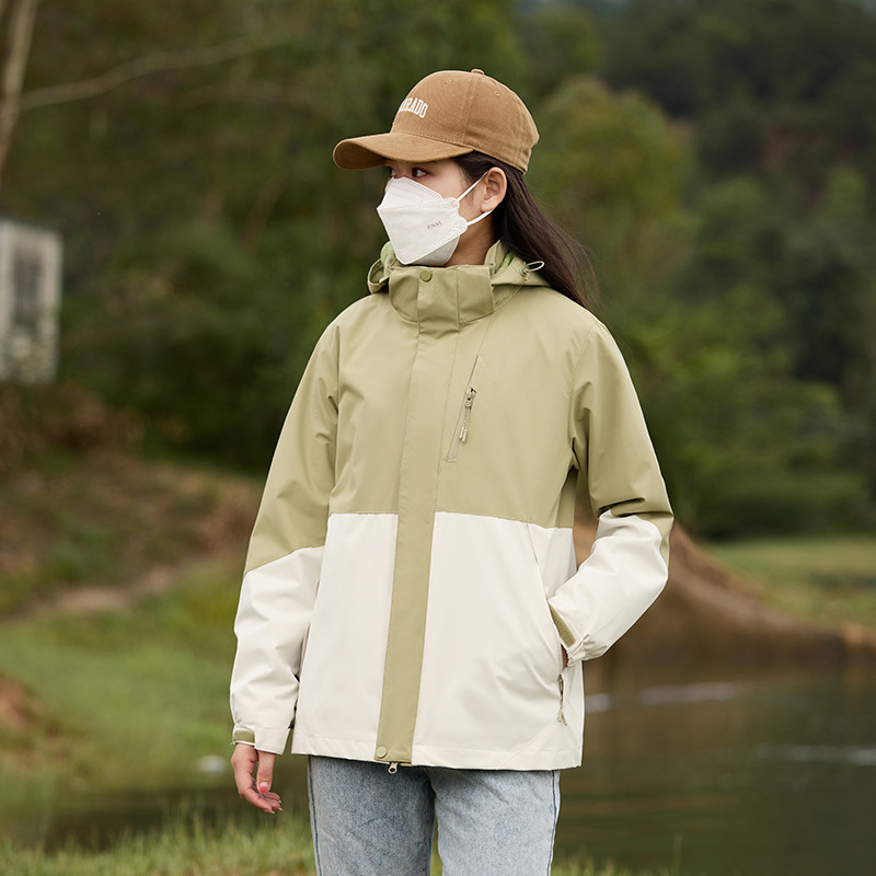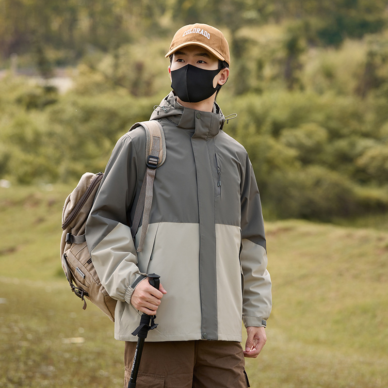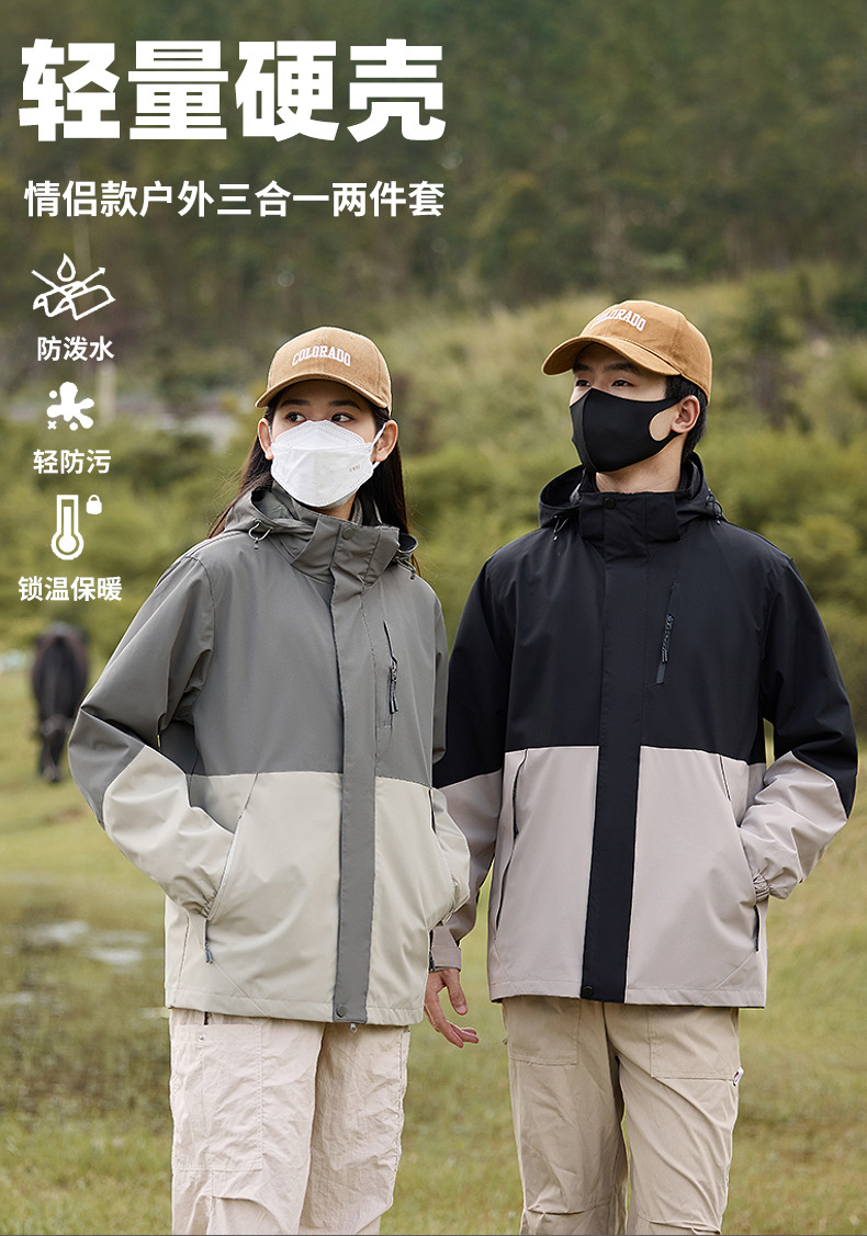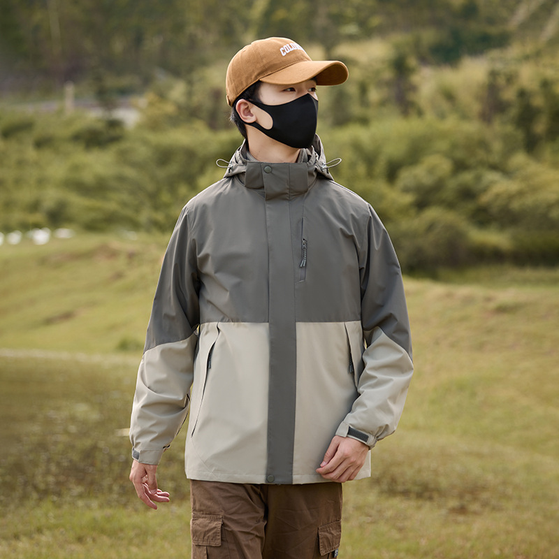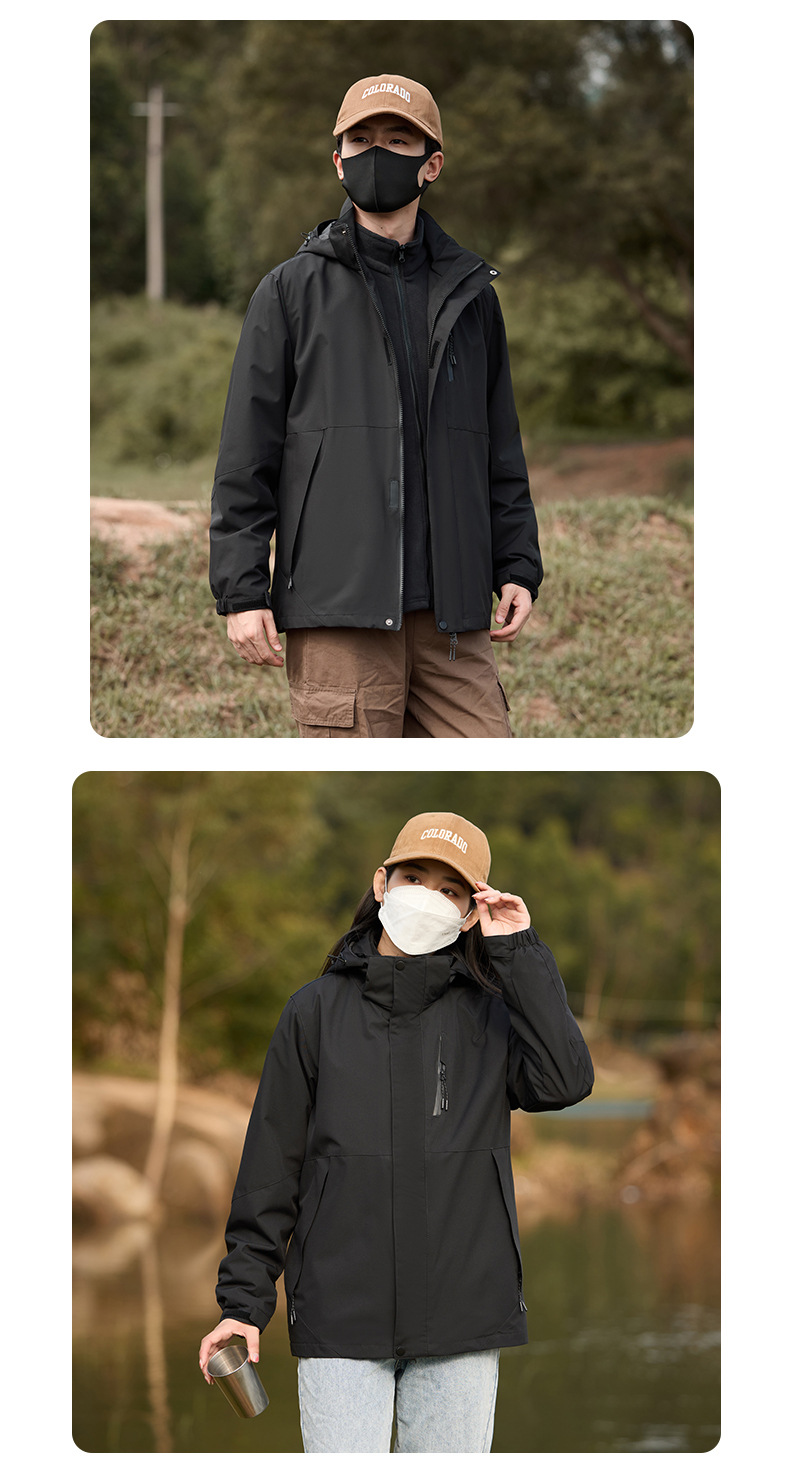 새로운 고급 카멜 스타일 야외 재킷 투피스 세트 커플 탈착식 모자 남성용 방수 및 방풍 재킷