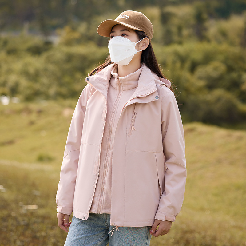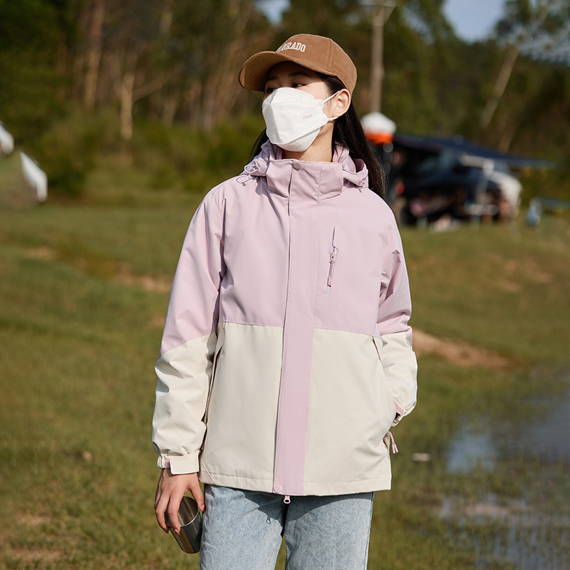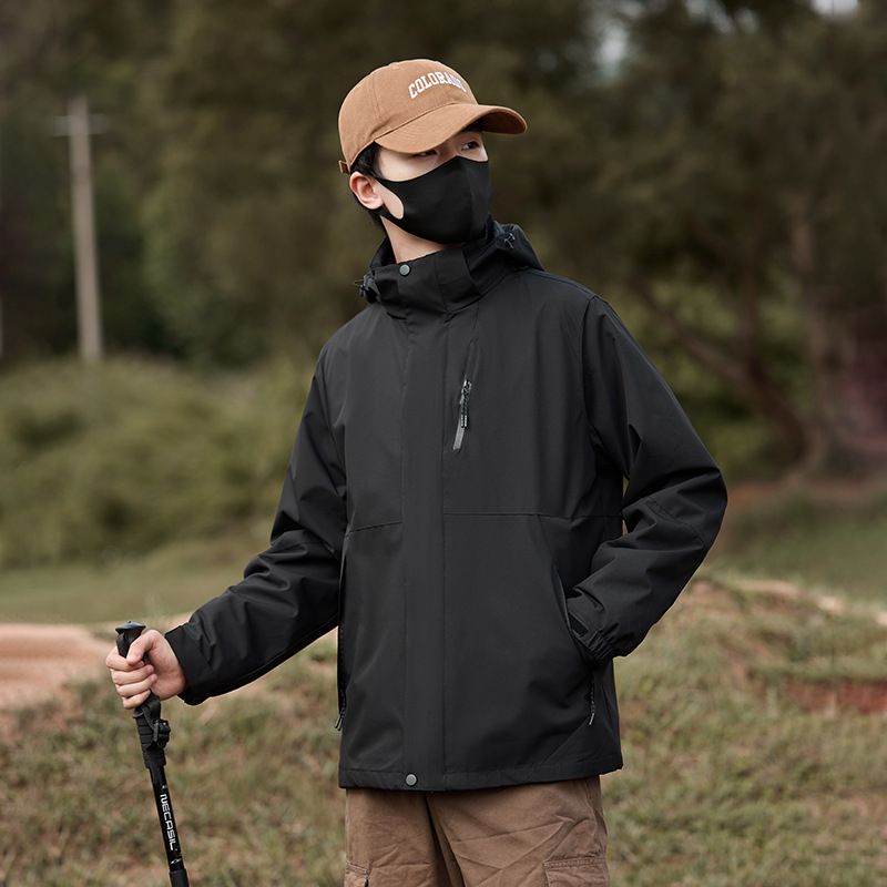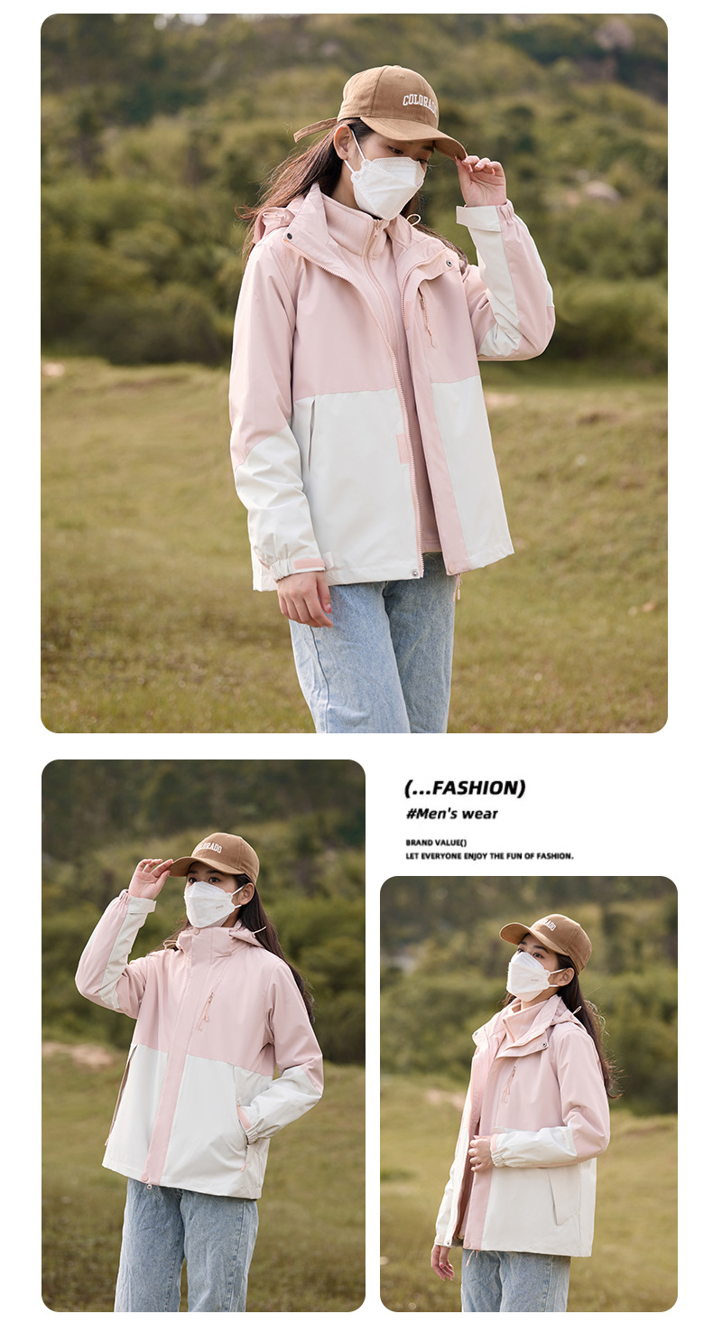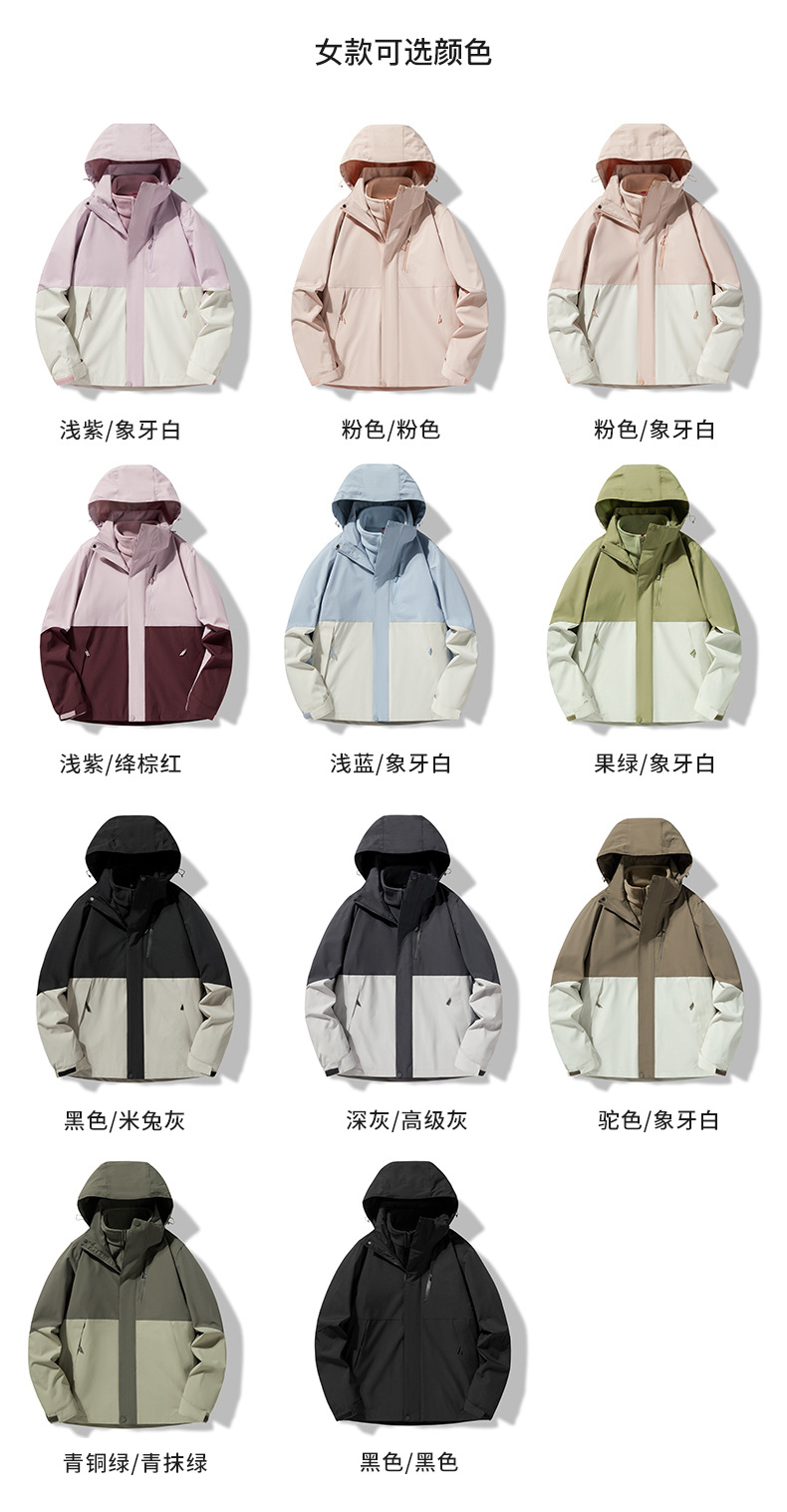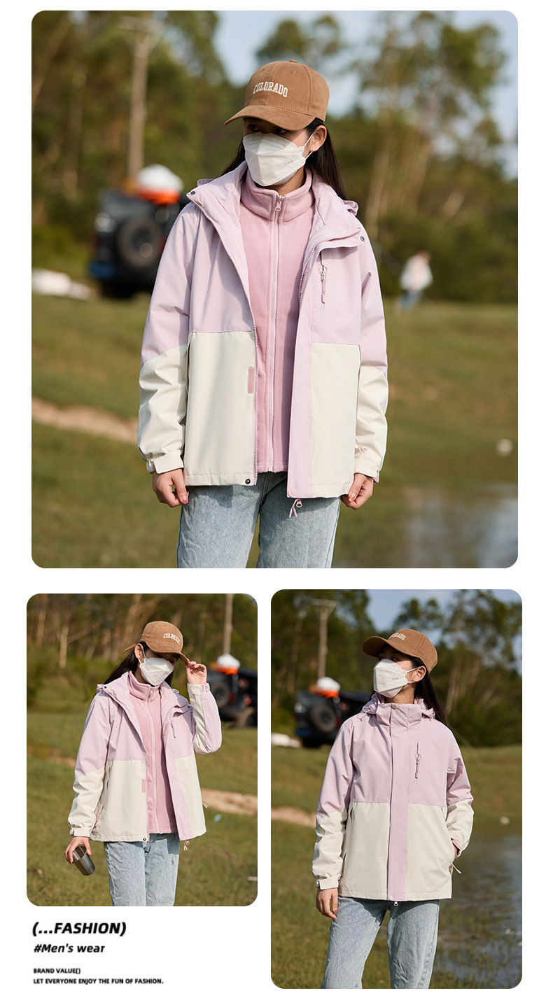 새로운 고급 카멜 스타일 야외 재킷 투피스 세트 커플 탈착식 모자 남성용 방수 및 방풍 재킷