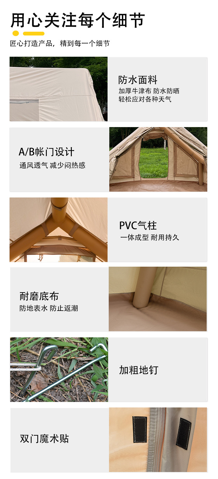 6.3 평방미터의 에어 텐트, 야외 캠핑용, 봄, 여름, 가을, 겨울에 사용 가능, 바람 방지, 자외선 차단, 방수, 내구성, 에어 컬럼이 없는 텐트스토어 가기