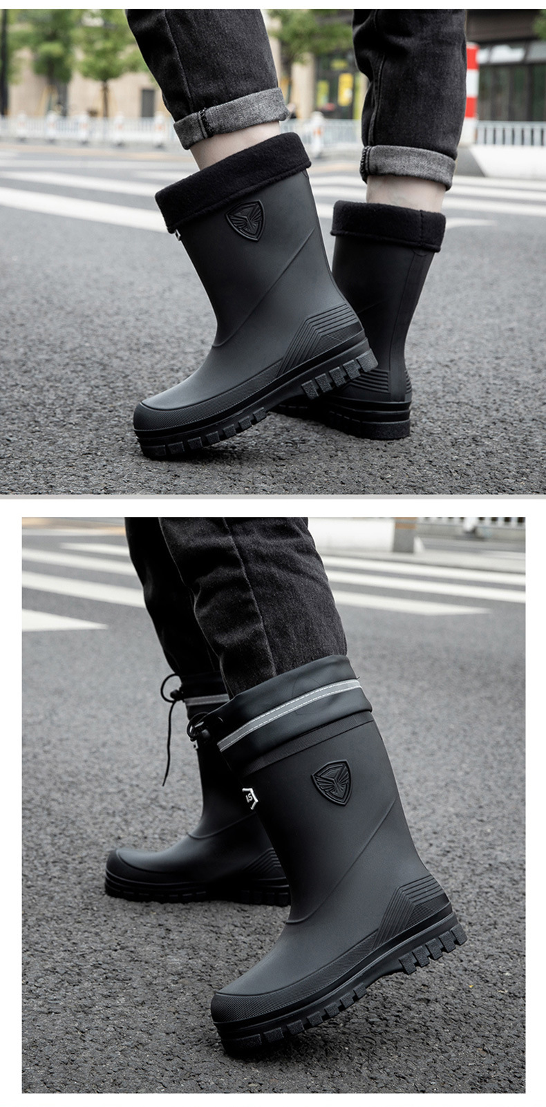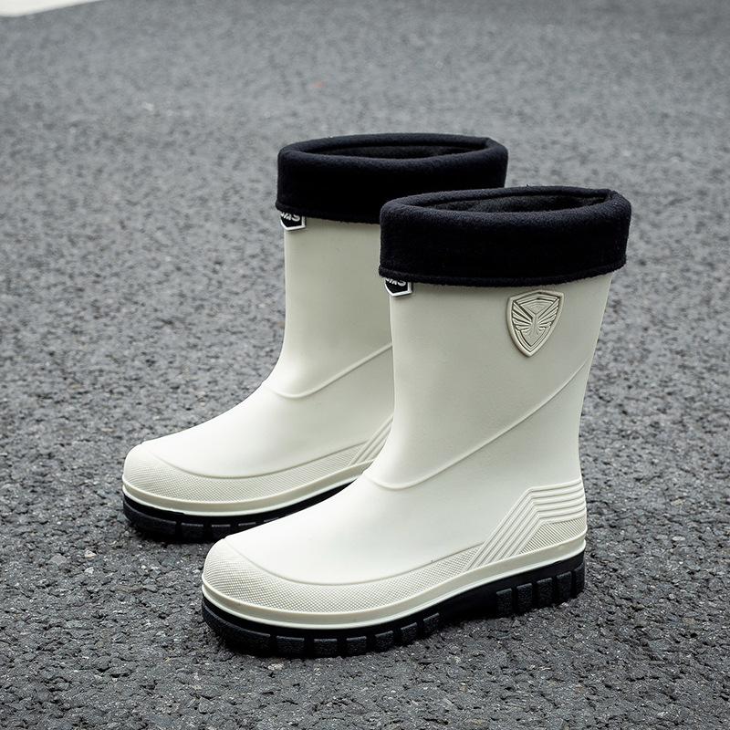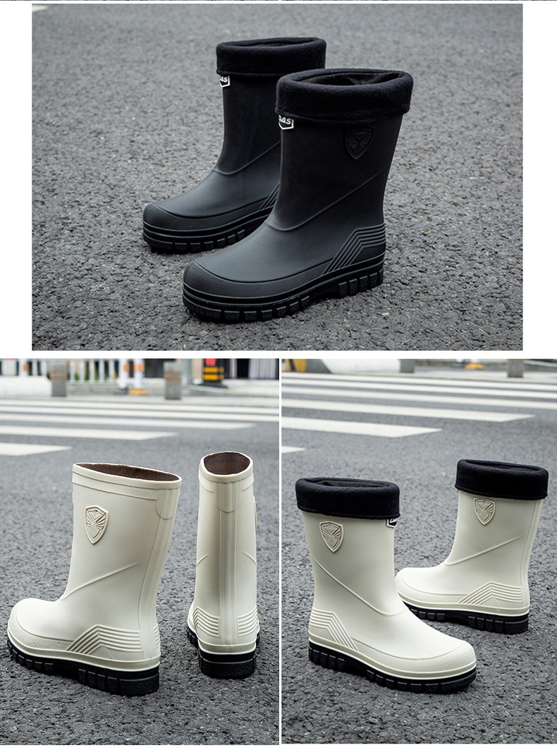 남성용 레인슈즈 미끄럼 방지 워터슈즈 중간 길이 방수 레인부츠 짧은 길이 패션 슬립온 고무신 수출용 경량 보온