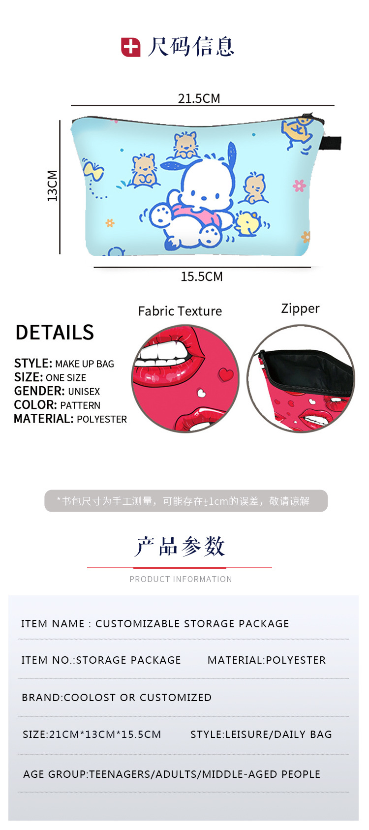 新品三丽鸥帕帢狗卡通化妆包ins 儿童学生收纳小包包手拿拉链卡包
