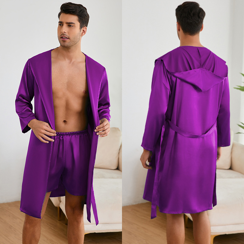 긴 소매 후드 목욕 가운 홈 의류 남성 남성 WP3297 세트 국경 간 새로운 잠옷 남성용 잠옷 반바지스토어 가기