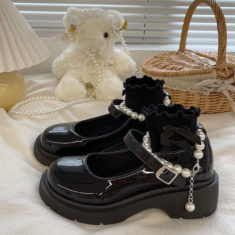 플러스 사이즈 여성 신발 넓은 발 영국식 흰색 가죽 신발 여성 두꺼운 밑창 올 매치 펄 메리 제인 신발 스커트 JK 신발스토어 가기