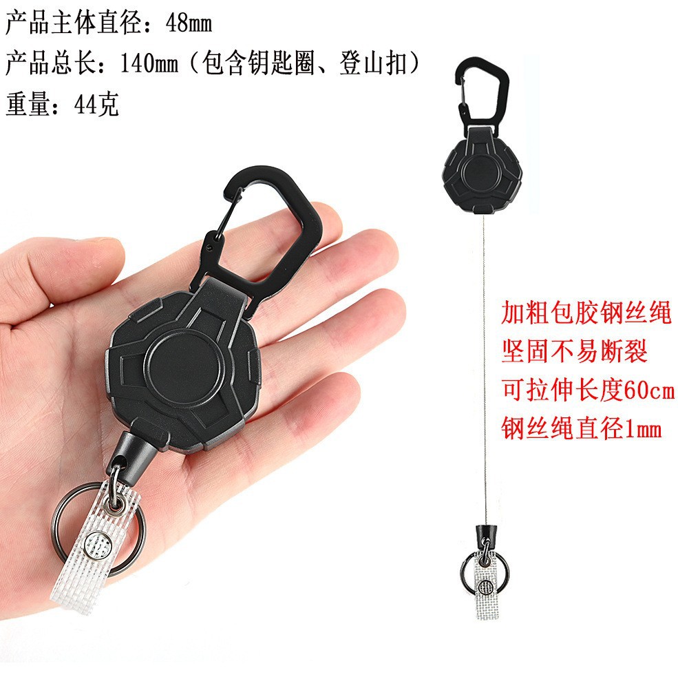 높은 탄성 두꺼운 강철 와이어 로프 텔레스코픽 키 체인 등산 버클 야외 풀 로프 두 번째 리바운드 도난 방지 손실 쉬운 풀 버클