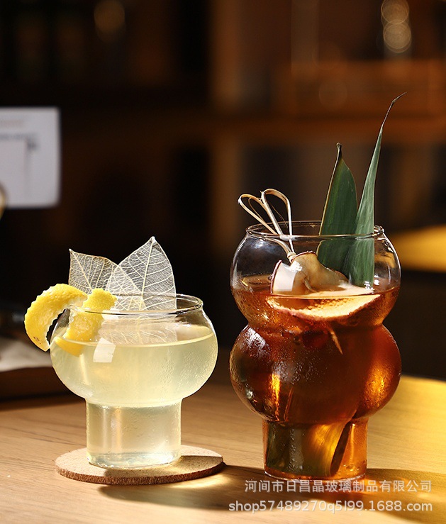 높은 borosilicate 투명한 조롱박 모양의 칵테일 컵 Haibo 컵 고온 내성 유리 음료 컵 주스 컵 차가운 음료 컵스토어 가기