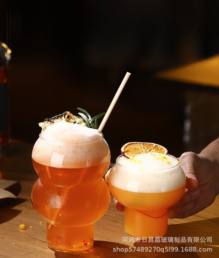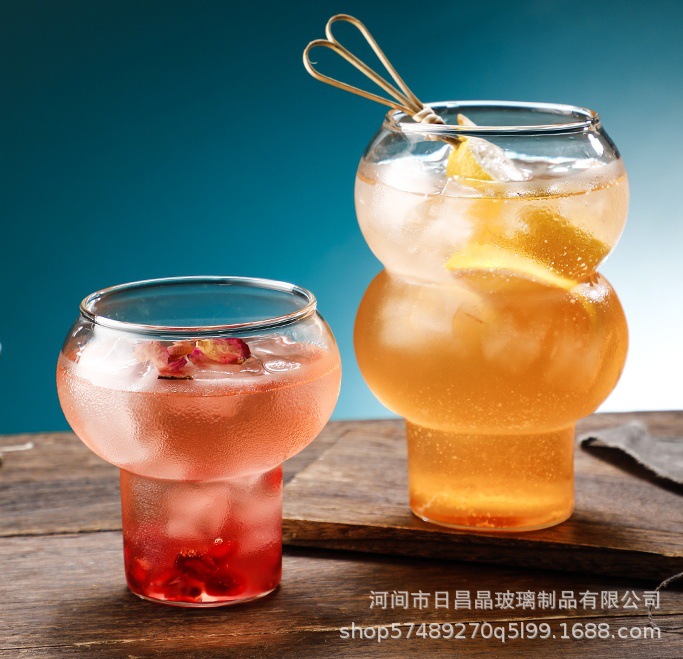 높은 borosilicate 투명한 조롱박 모양의 칵테일 컵 Haibo 컵 고온 내성 유리 음료 컵 주스 컵 차가운 음료 컵