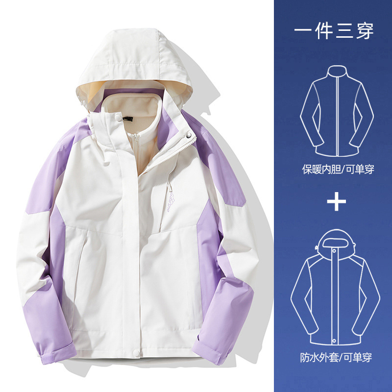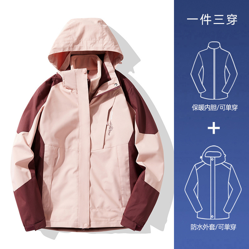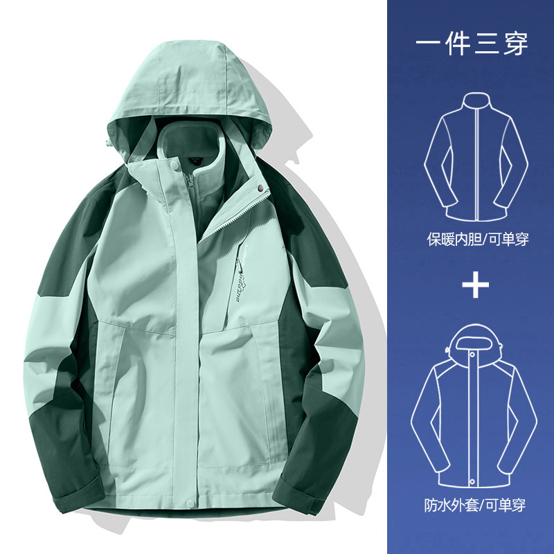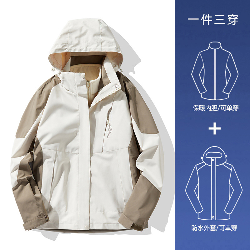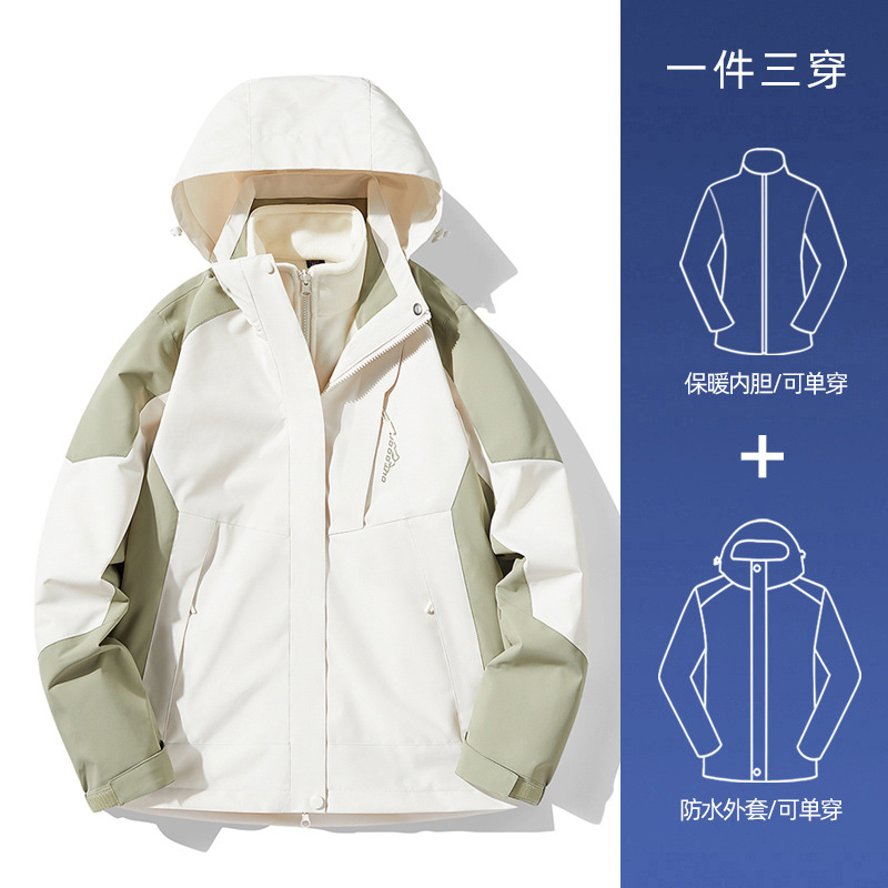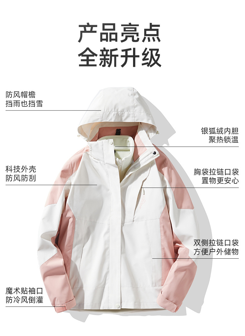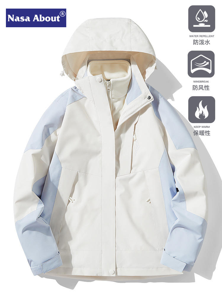 NASA 러쉬 탑 여자 남자 3 대 1 가을과 겨울 새로운 스키 세트 방풍 방수 야외 기모 등반 재킷 트렌디