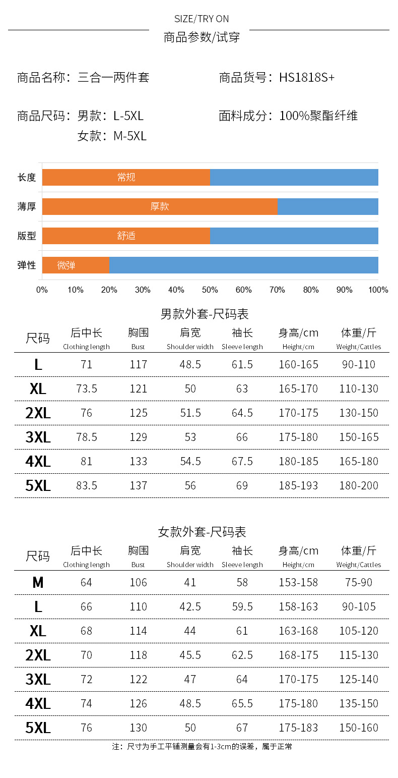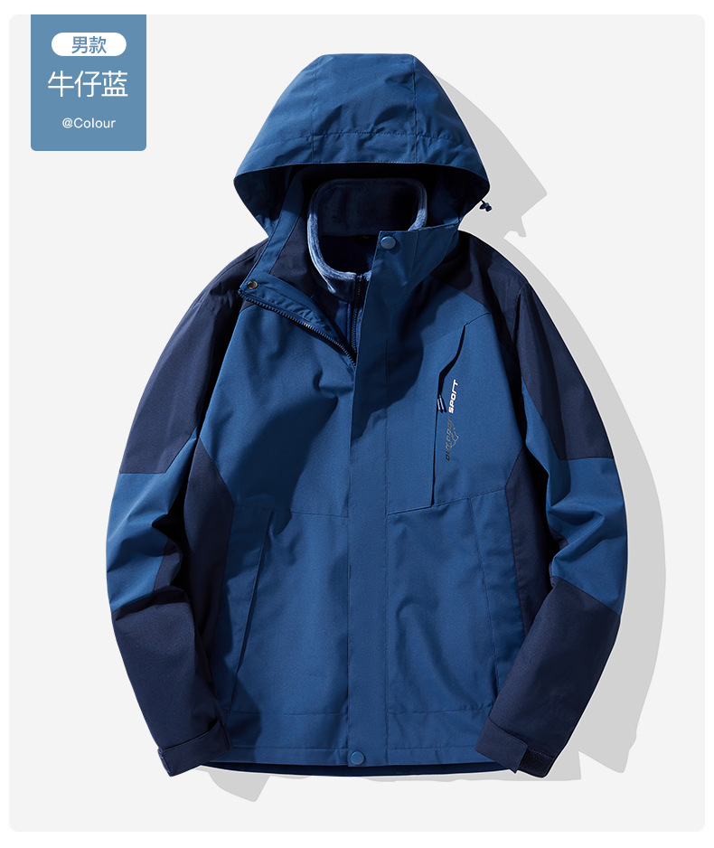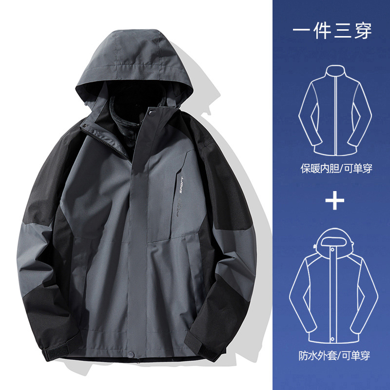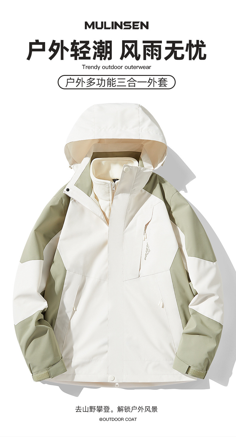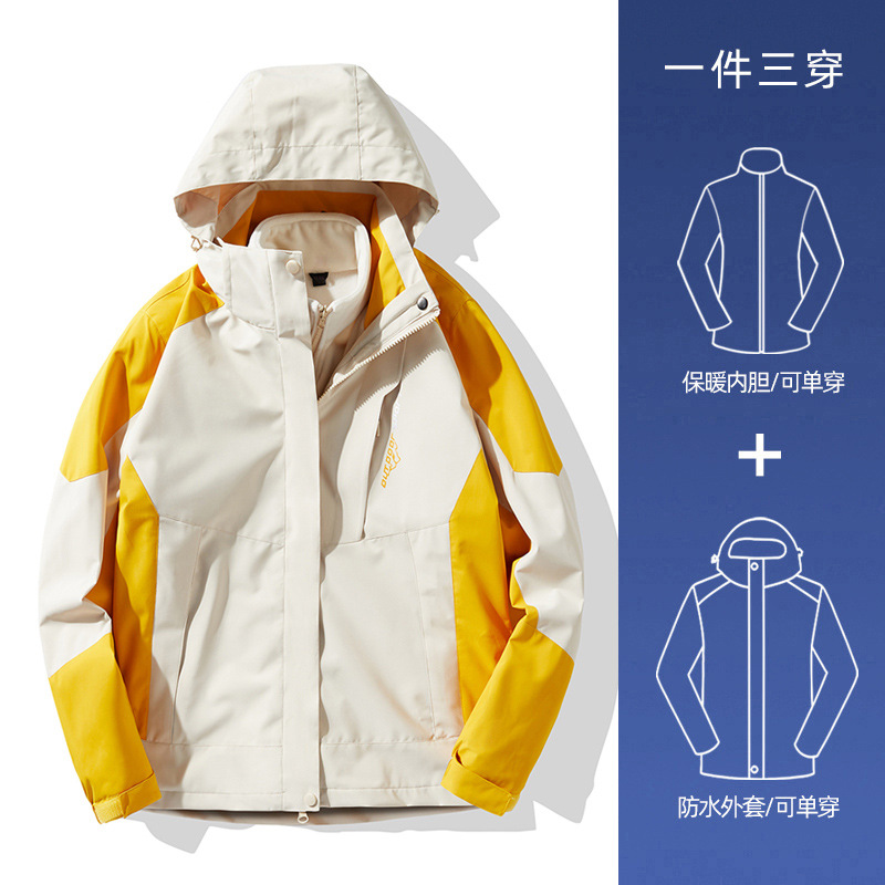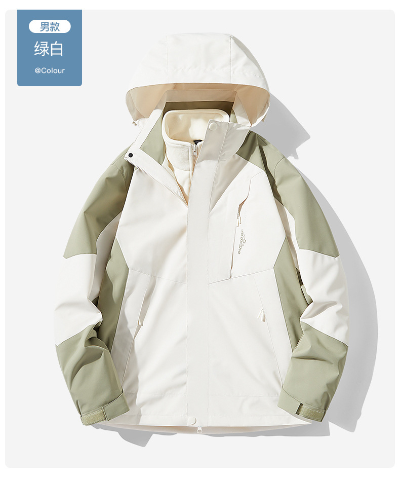 NASA 러쉬 탑 여자 남자 3 대 1 가을과 겨울 새로운 스키 세트 방풍 방수 야외 기모 등반 재킷 트렌디
