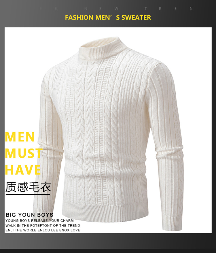 빈티지 심플 솔리드 컬러 하프 터틀넥 베이스 스웨터 남성 캐주얼 남성 가짜 양 하이 퀄리티 니트 스웨터