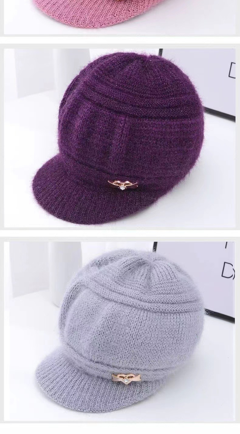 겨울 새 여성 니트 양모 모자 여성 기모 중년 및 노인 모자 따뜻한 귀 보호 모자 어머니 할머니 모자