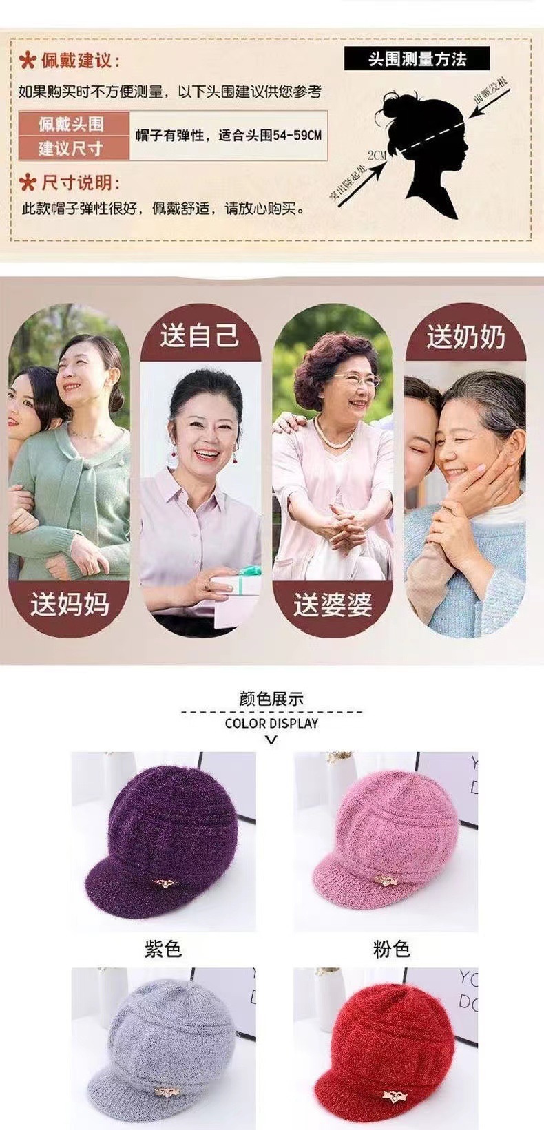 겨울 새 여성 니트 양모 모자 여성 기모 중년 및 노인 모자 따뜻한 귀 보호 모자 어머니 할머니 모자스토어 가기