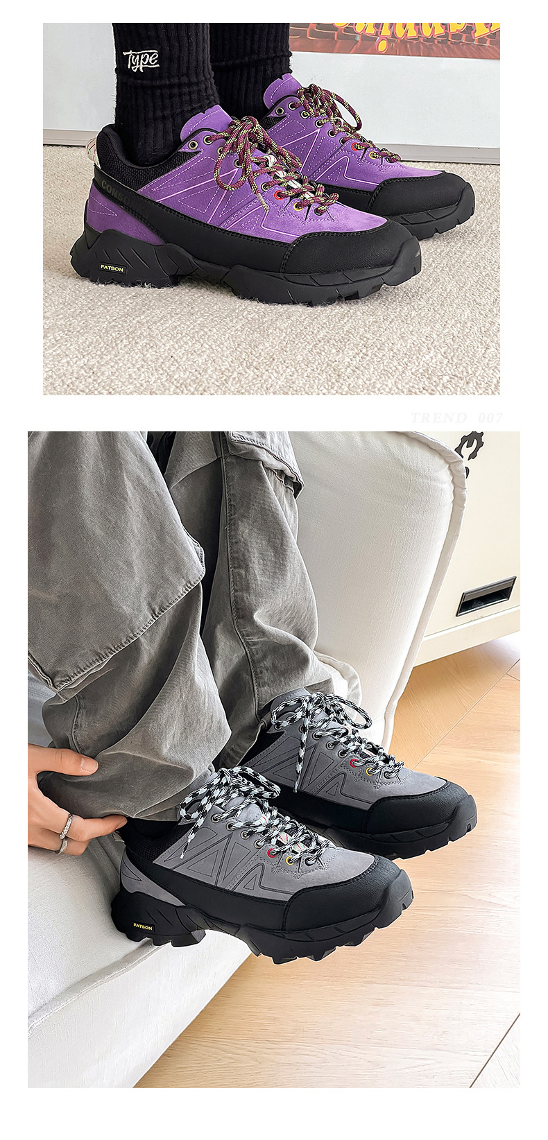 2024 새로운 봄 하이킹 신발 남자 높이 올 매치 통기성 신발 커플 미끄럼 방지 야외 하이킹 신발스토어 가기