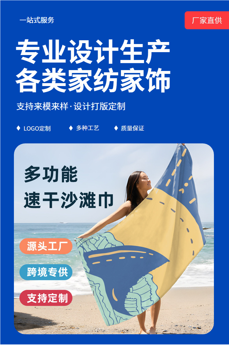 국경 간 제조 업체 마이크로 화이버 비치 타월 양면 벨벳 흡수성 빠른 건조 목욕 타월 해변 수영 비치 타월