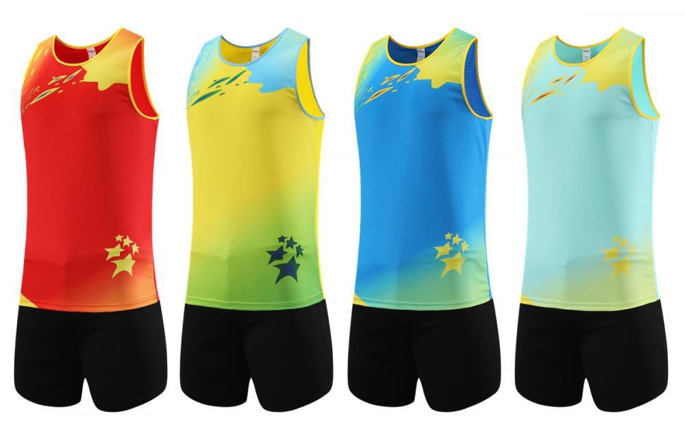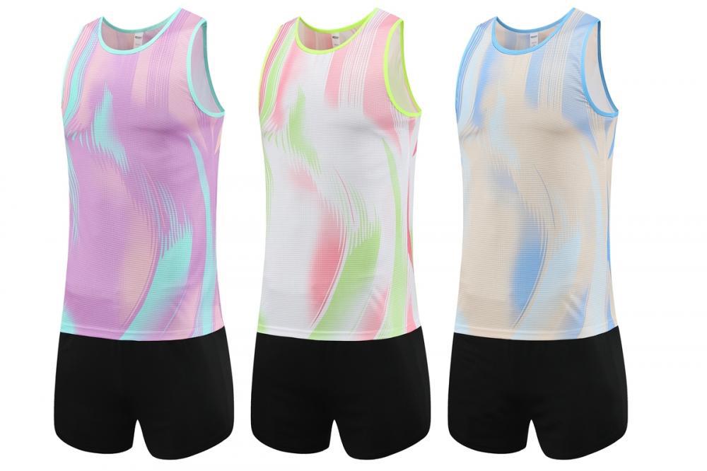 남성과 여성 스포츠 학생을위한 육상 의류 세트 훈련 의류 스포츠 테스트 조끼 대회 의류 운동복 마라톤 달리기 빠른 건조