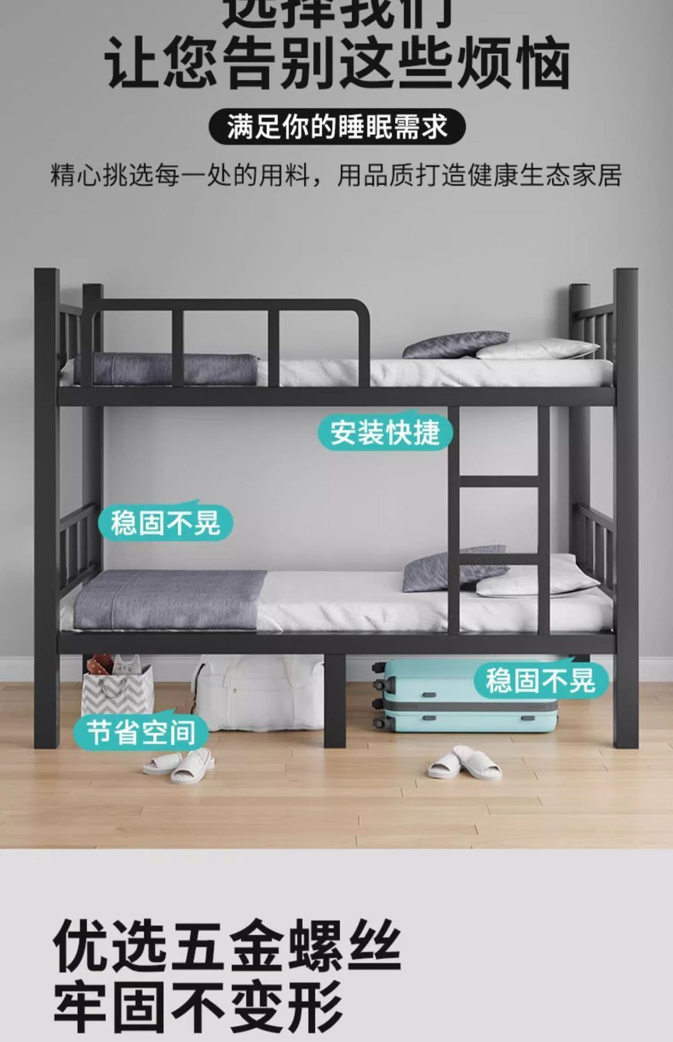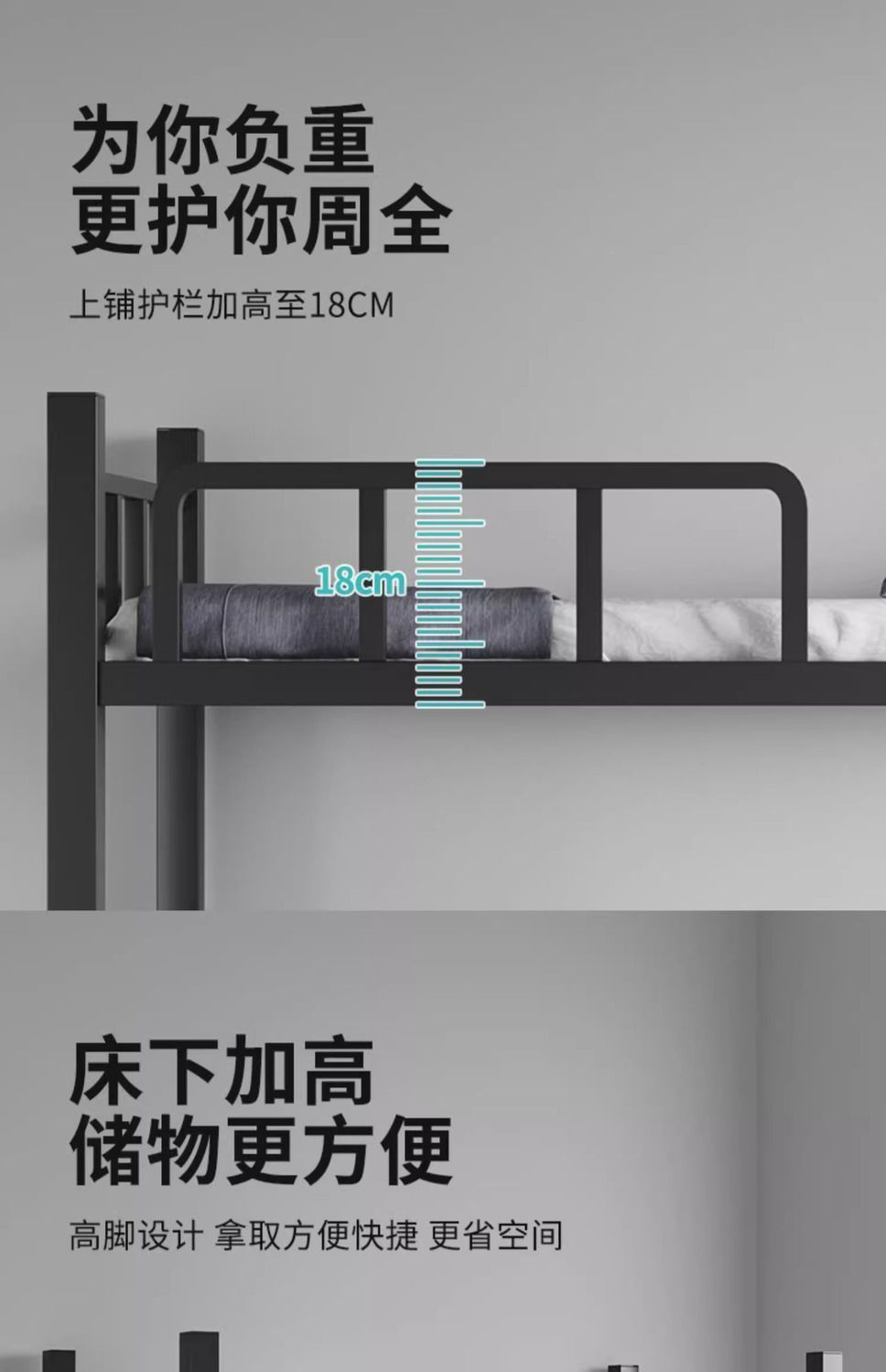 상하 이층 철제 프레임 침대 학생 기숙사 직원 이층 침대 대여실 높고 낮은 침대 더블 침대 2 층 철제 프레임 침대스토어 가기