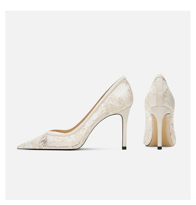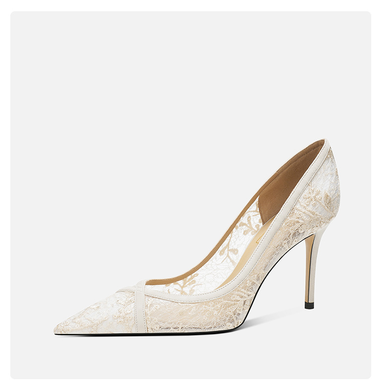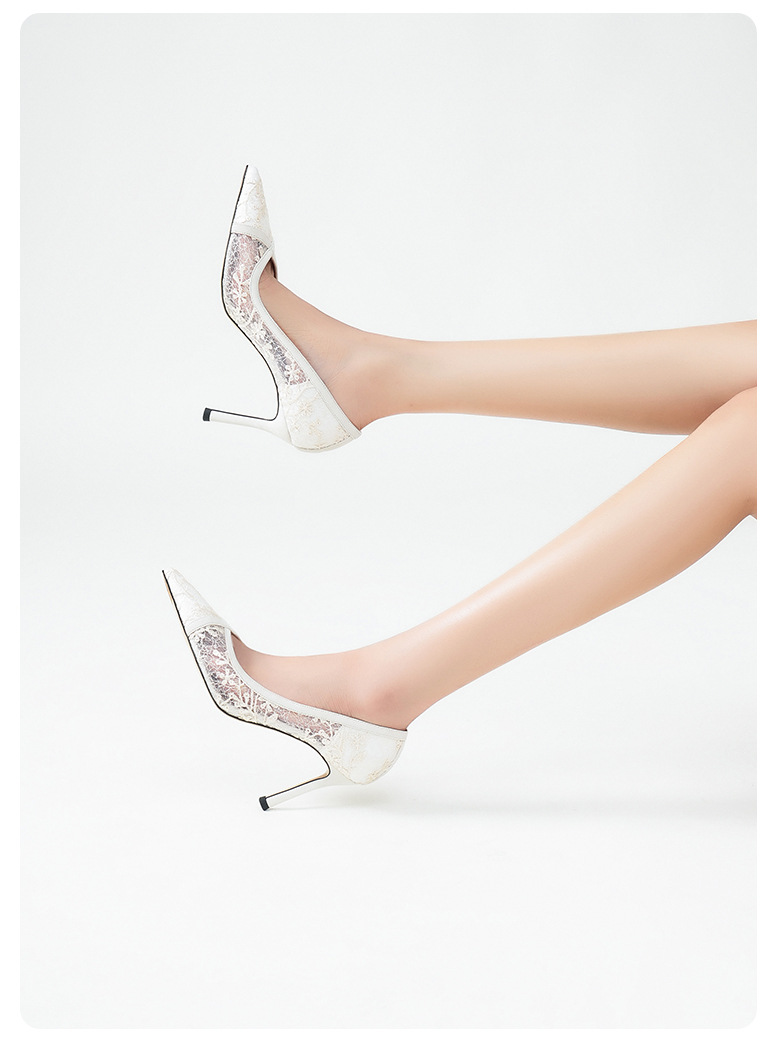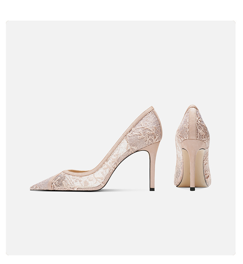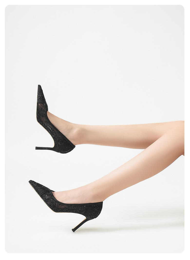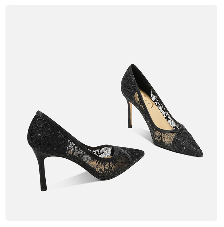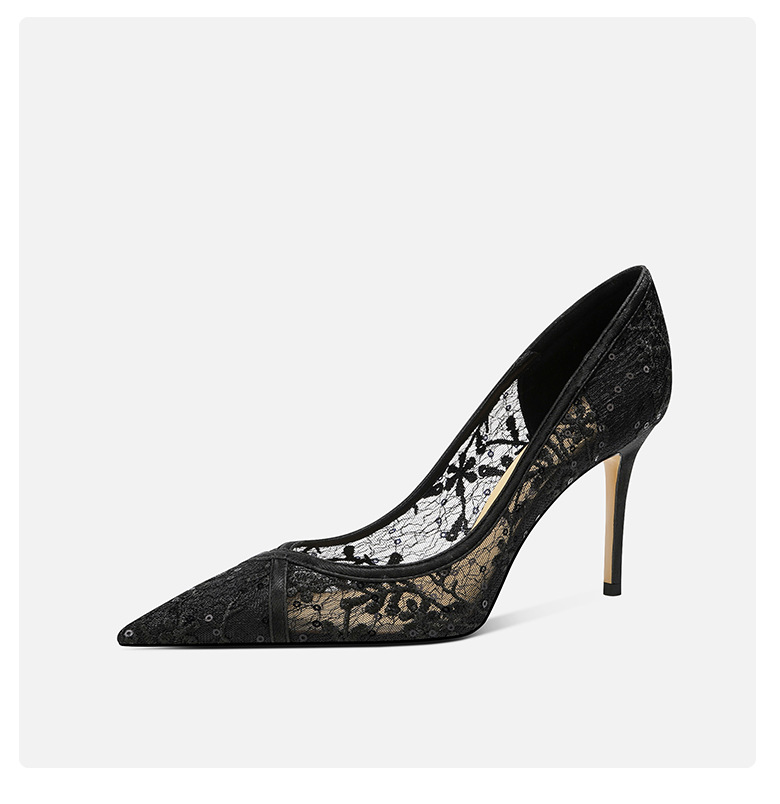 708-40 검은 양가죽 하이힐 여성의 새로운 레이스 통기성 중공 신발 요정 뾰족한 누드 얇은 뒤꿈치 신발