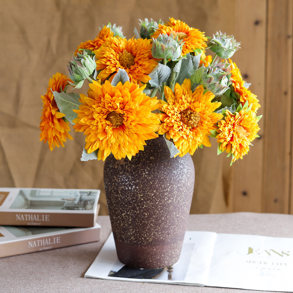 테디 해바라기 인조 꽃다발 거실 현관 장식 꽃 캠핑용 가짜 꽃 장식품 손잡이 꽃꽂이