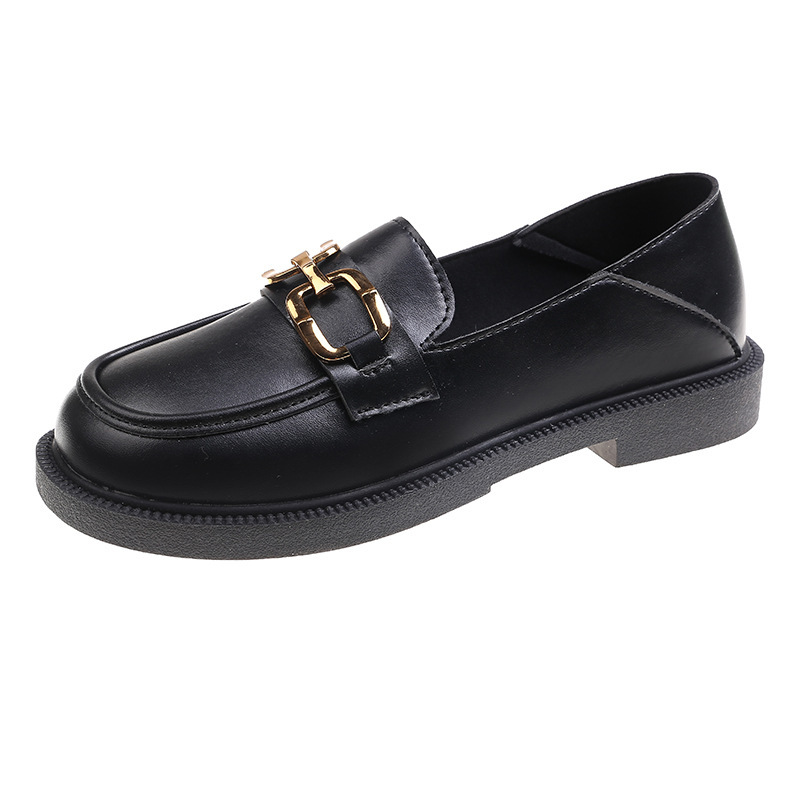 싱글 신발 여성 대외 무역 2024 가을 및 겨울 새로운 체인 중학교 학생의 어머니 플랫 게으른 한 페달 로퍼 여성