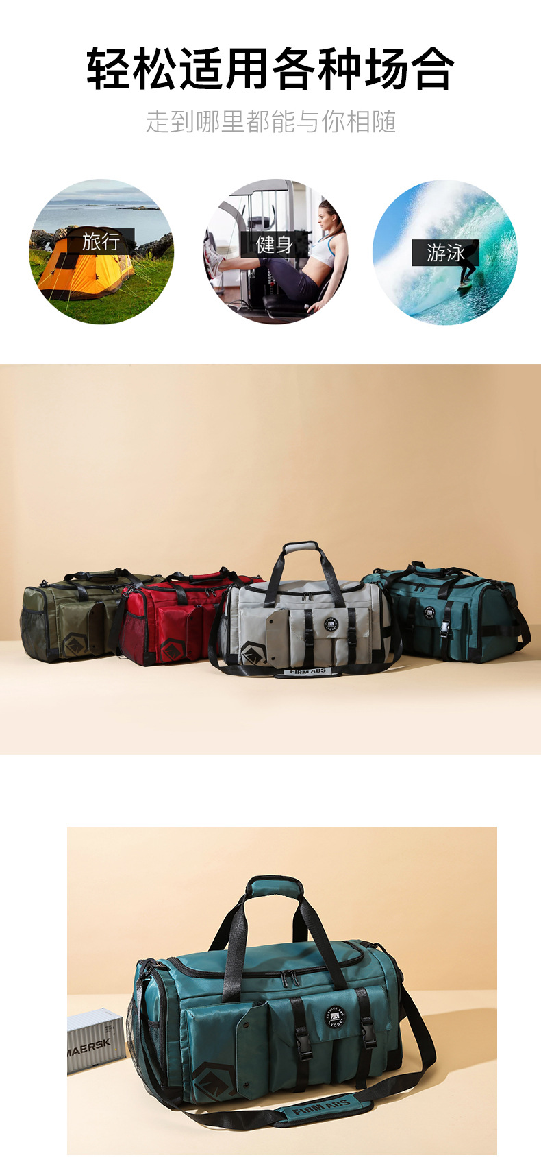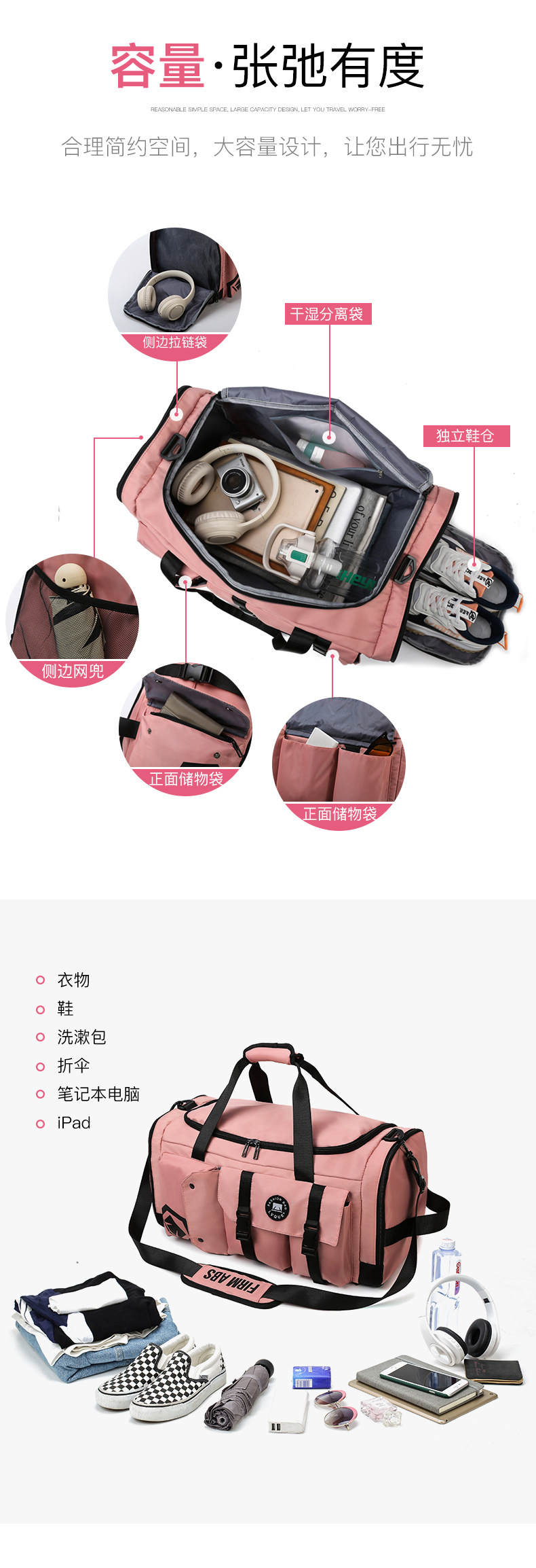 새로운 건조하고 젖은 분리 된 여행 가방 휴대용 대용량 스포츠 피트니스 가방 여성용 3 사용 여행 수하물 배낭스토어 가기