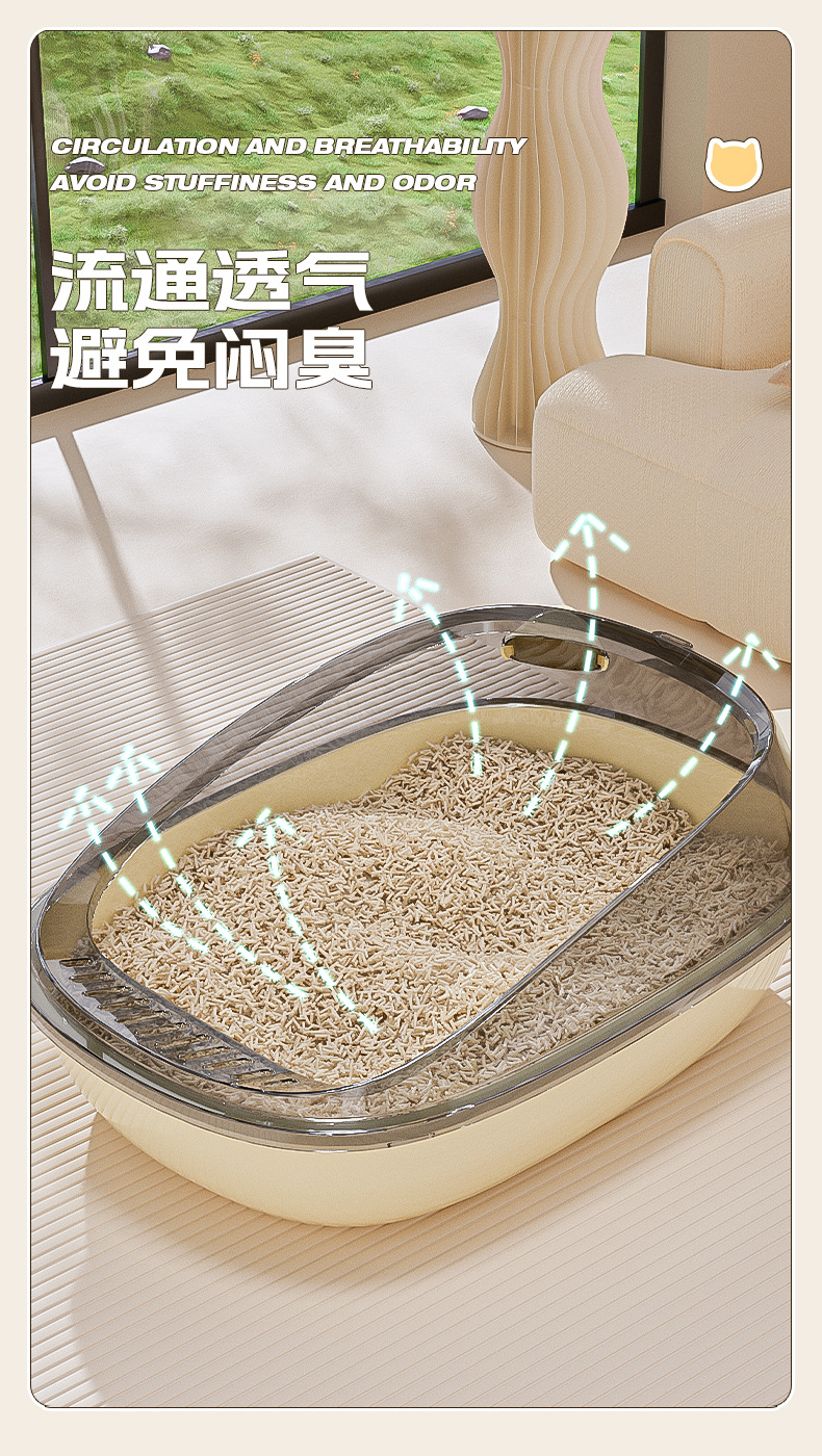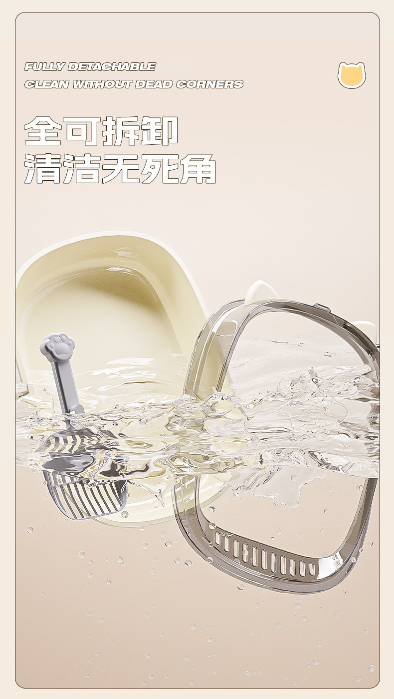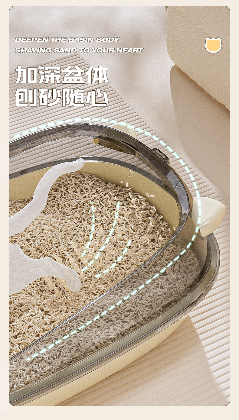 오픈형 고양이 화장실, 고양이 배변함, 물 튀김 방지, 귀여운 디자인, 대용량 반려동물 용품