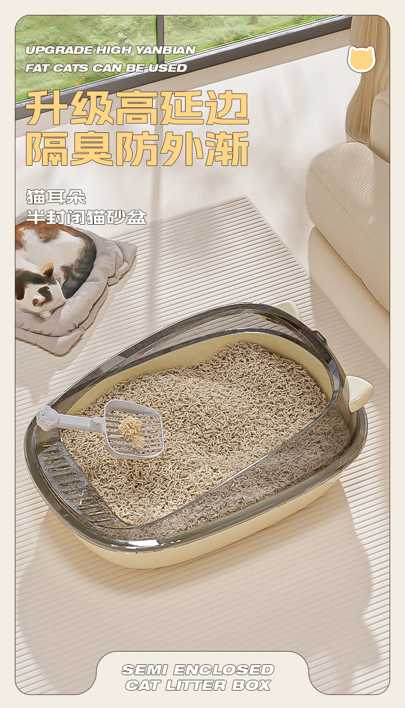 • 고양이 귀 모양 황색 고양이 화장실
