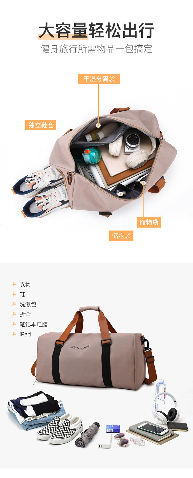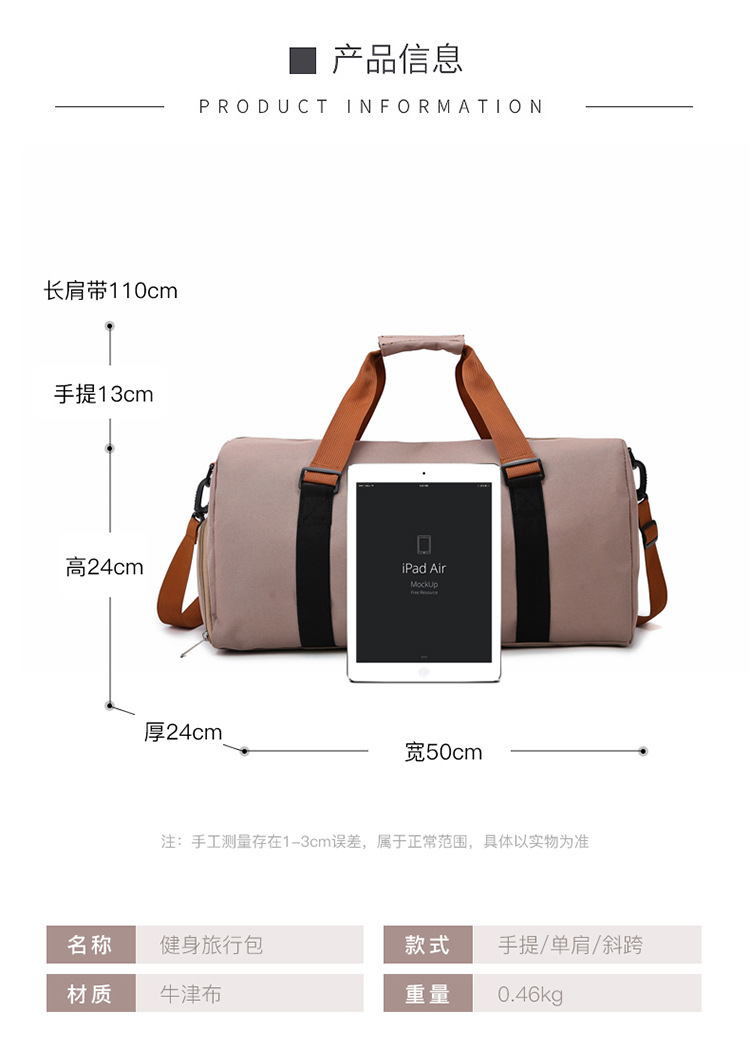 체육관 가방 건조하고 젖은 별도의 스포츠 핸드백 신발 빈 옥스포드 천 짧은 거리 여행 가방 커버 타이 로드 인쇄 가능한 로고