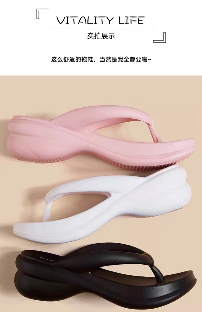 새로운 플립 플롭과 함께 Zhao Lusi는 에바 두꺼운 바닥을 입고 프랑스 패션 비치 샌들 도매스토어 가기