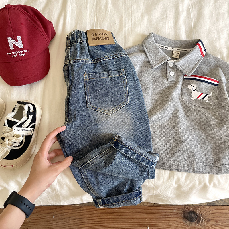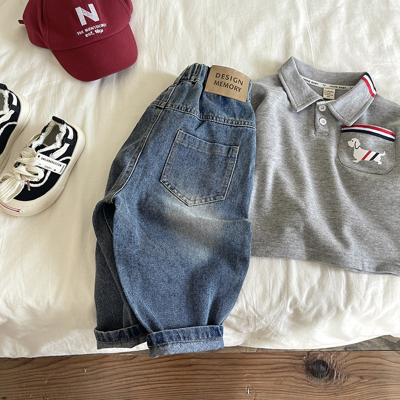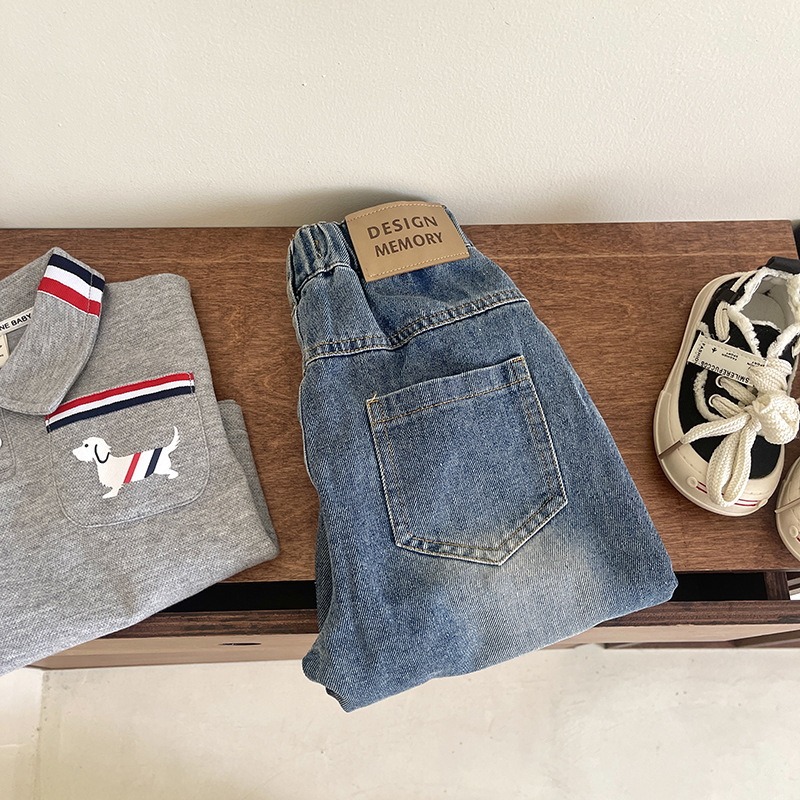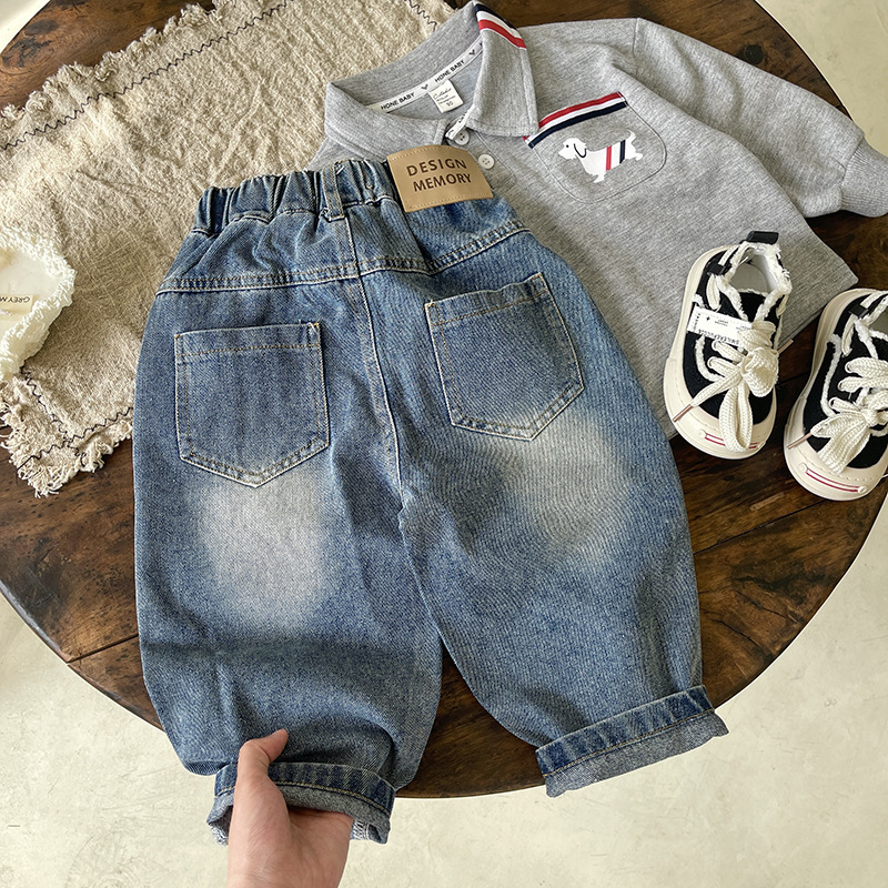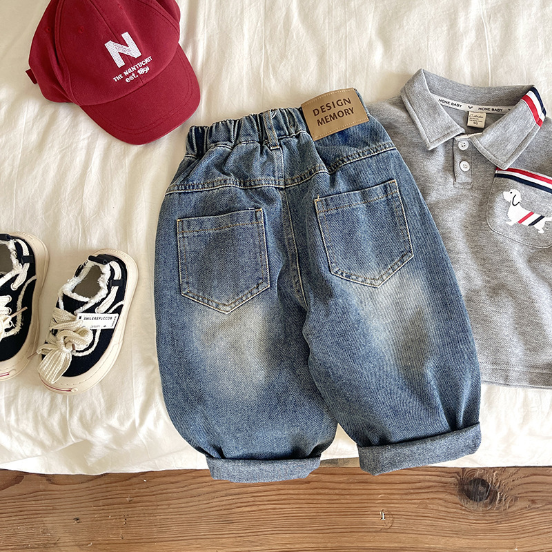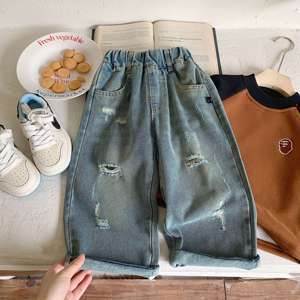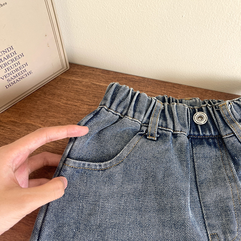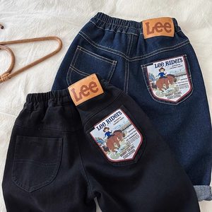 소년 하이 퀄리티 2024 가을 새 어린이 청바지 남녀 클래식 소 느슨한 청바지 어린이 바지스토어 가기