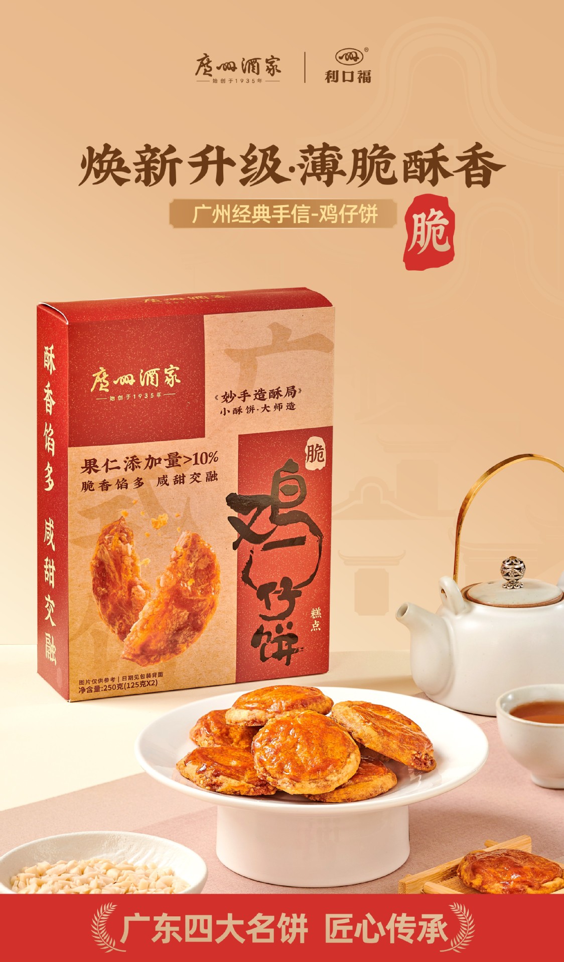 광저우 주자 레스토랑 치지베이크 250g 광둥식 광둥 특산 간식 기념품 리코푸 광둥식 바삭바삭한 과자