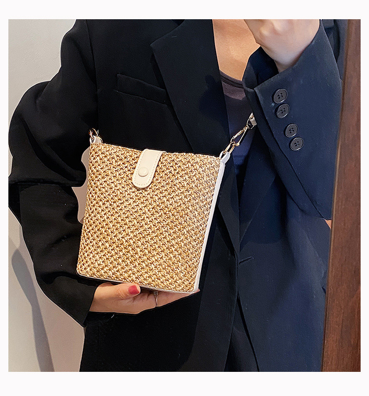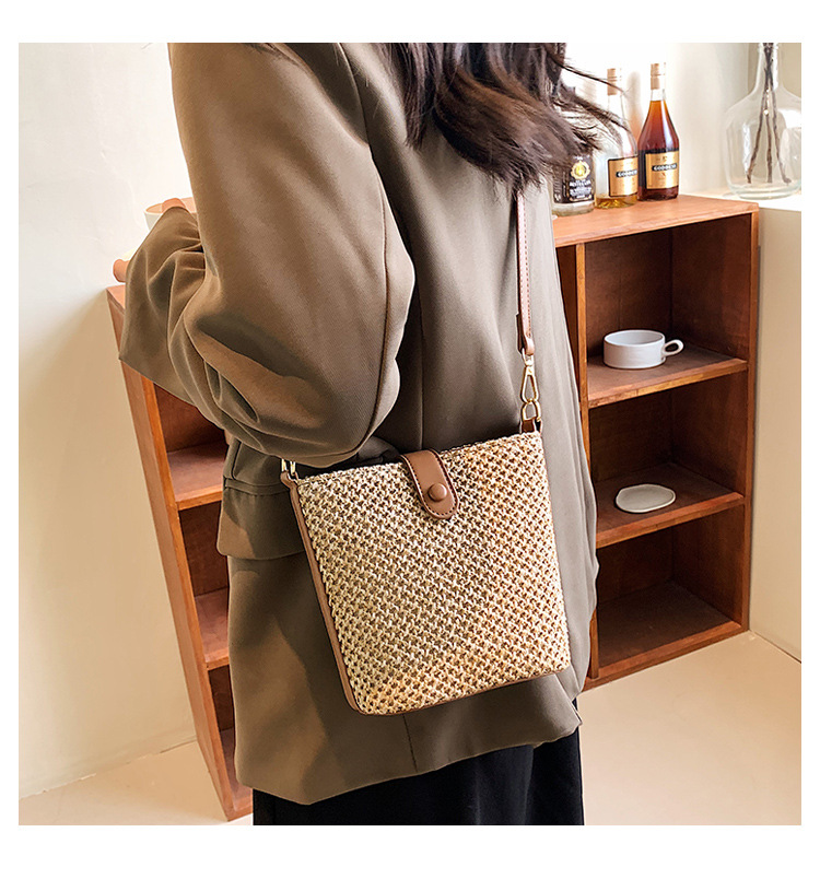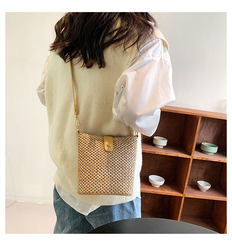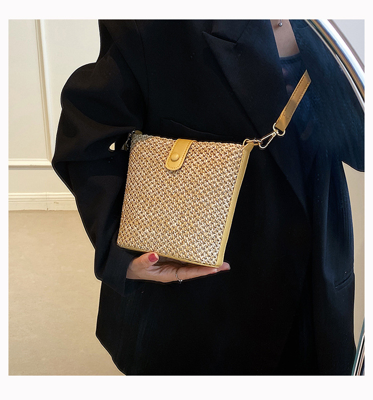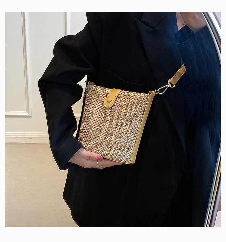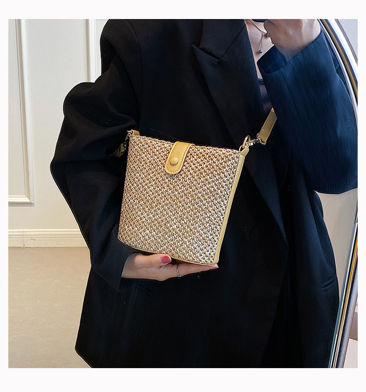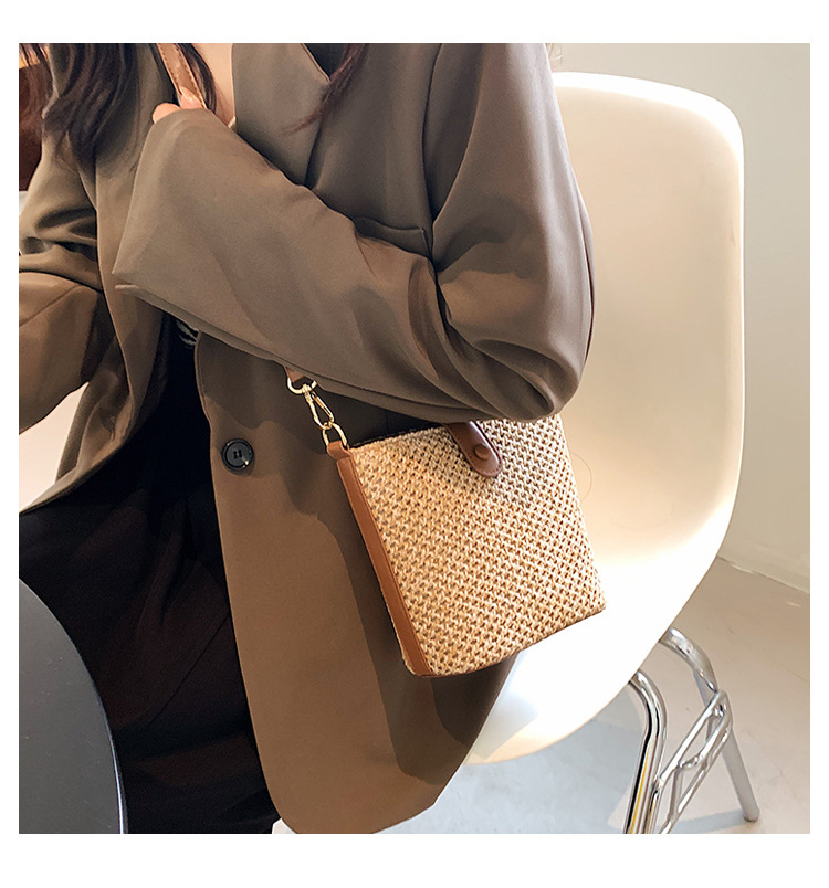 2024 새로운 패션 패션 어깨 가방 여름 밀짚 작은 가방 여성용 버킷 가방 캐주얼 짠 크로스 바디 여성용 가방