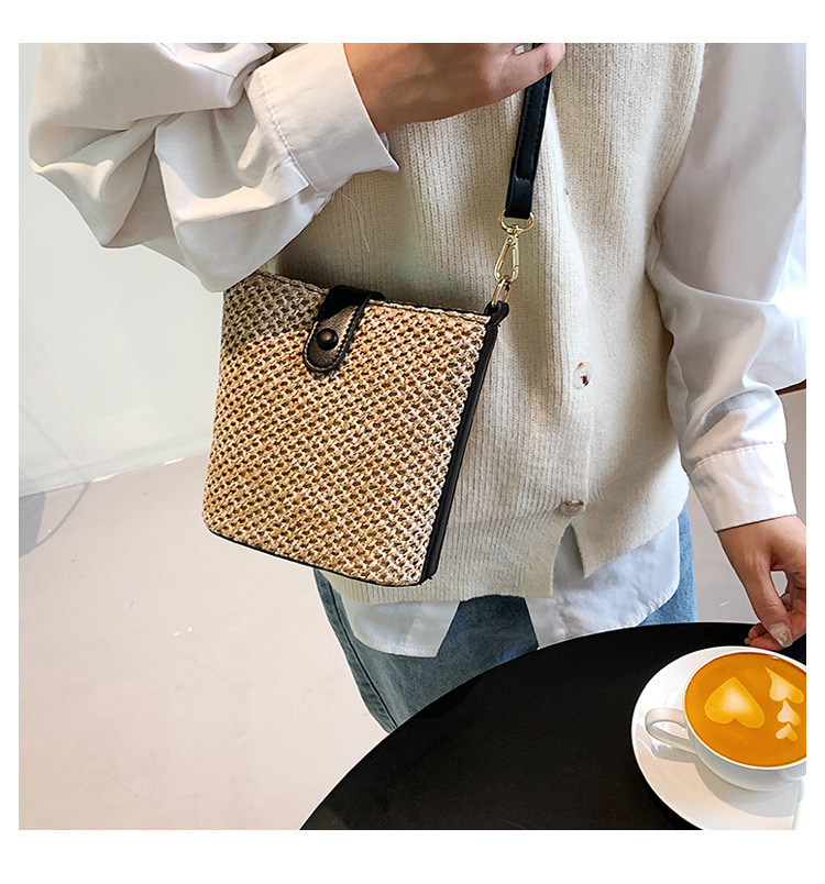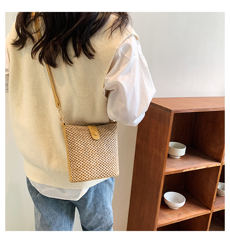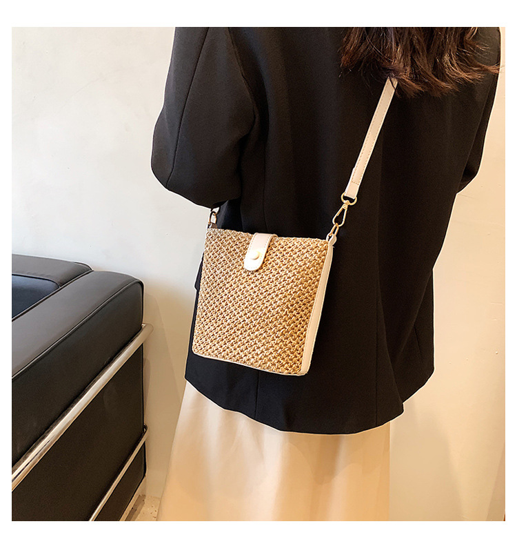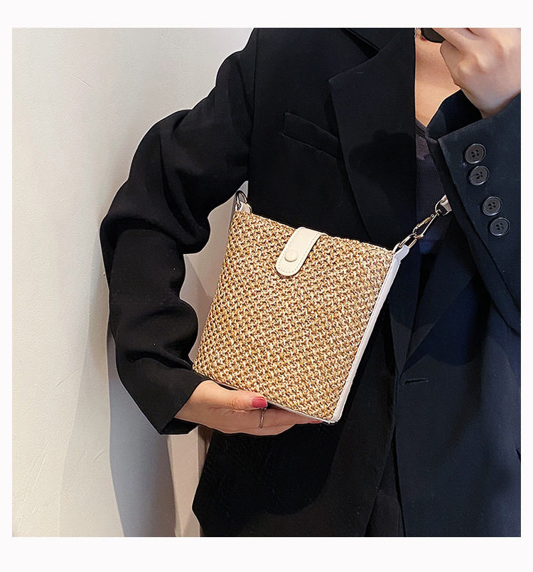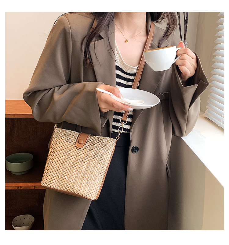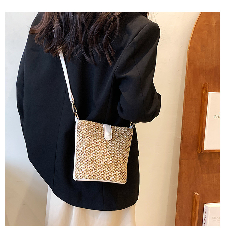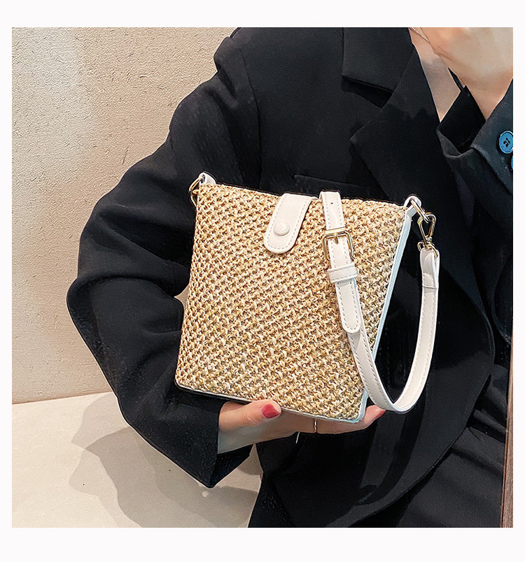 2024 새로운 패션 패션 어깨 가방 여름 밀짚 작은 가방 여성용 버킷 가방 캐주얼 짠 크로스 바디 여성용 가방