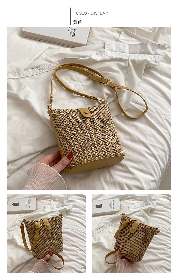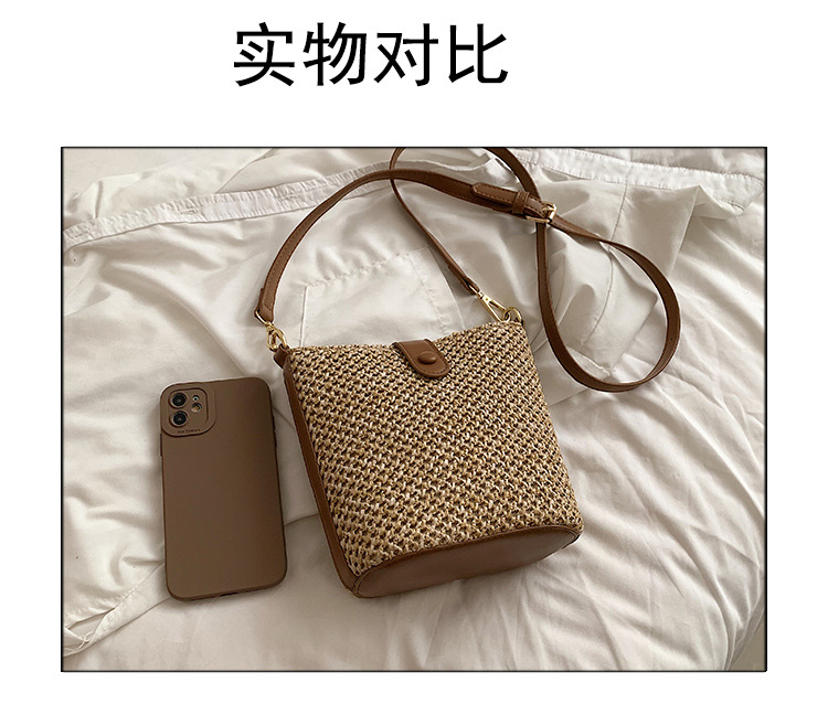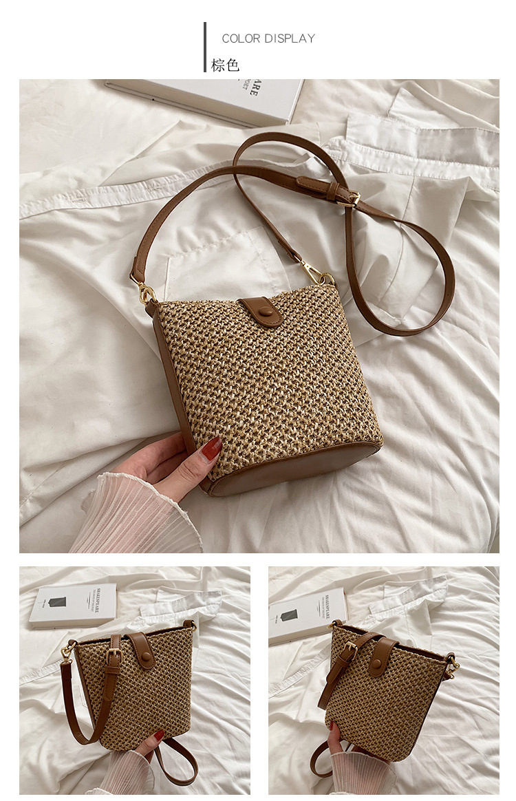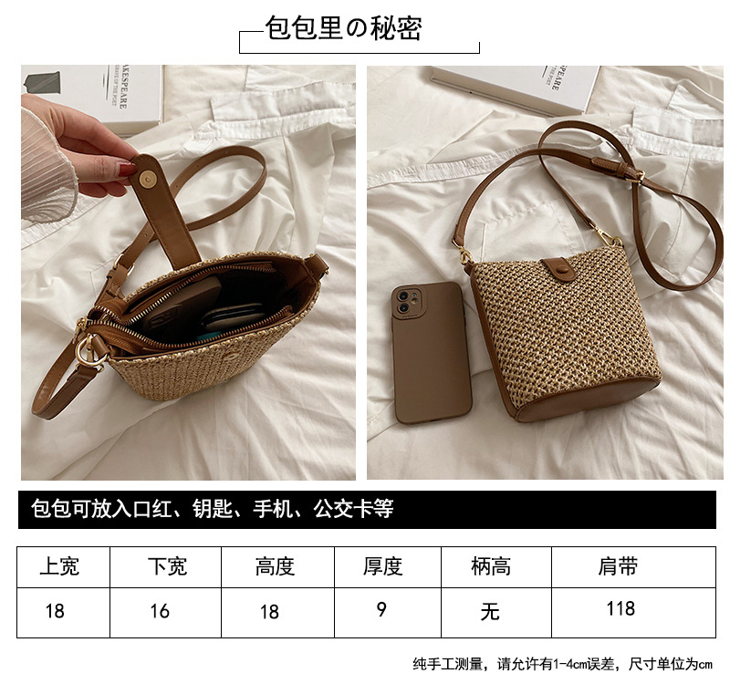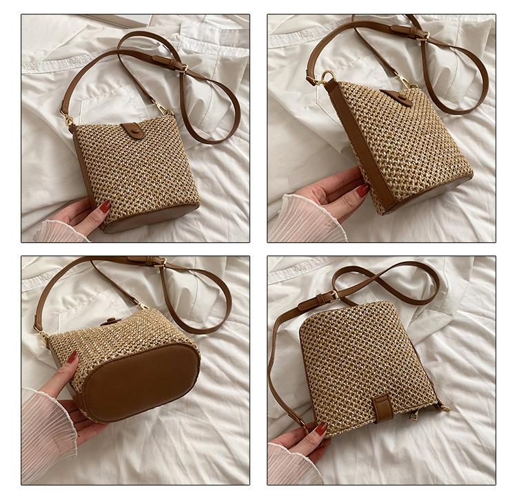 2024 새로운 패션 패션 어깨 가방 여름 밀짚 작은 가방 여성용 버킷 가방 캐주얼 짠 크로스 바디 여성용 가방스토어 가기