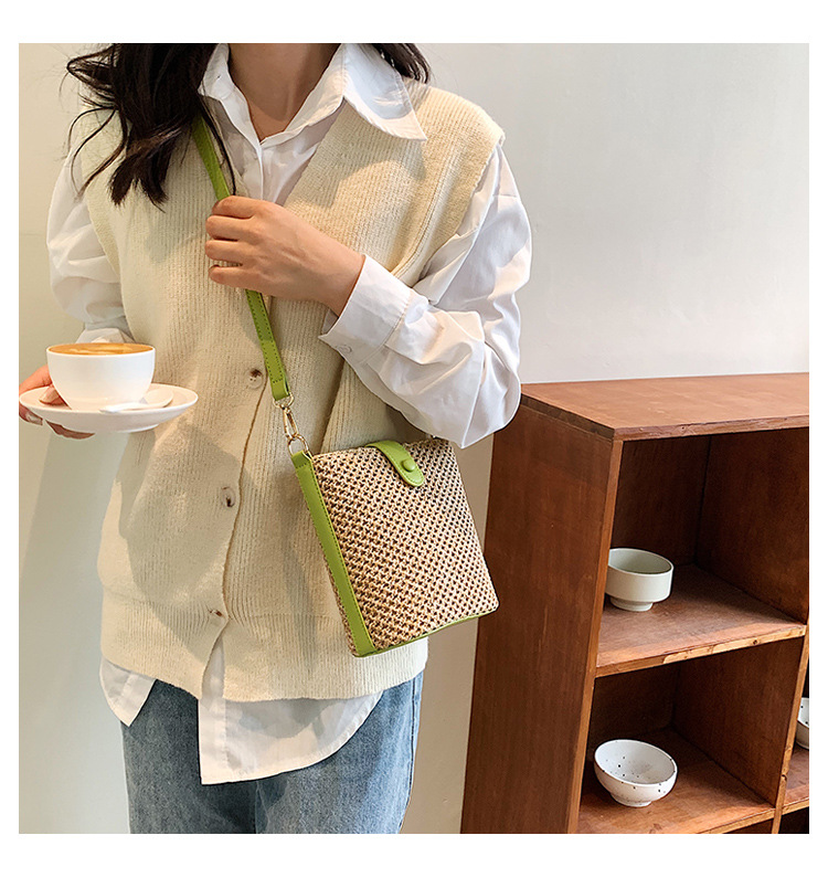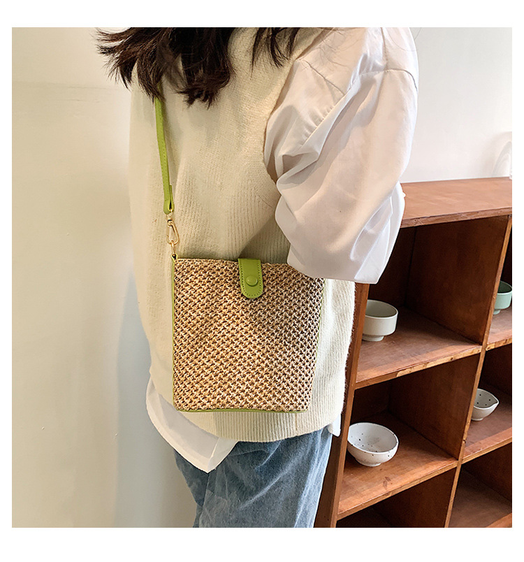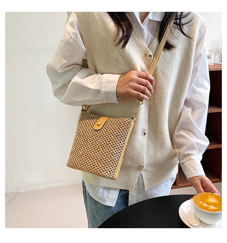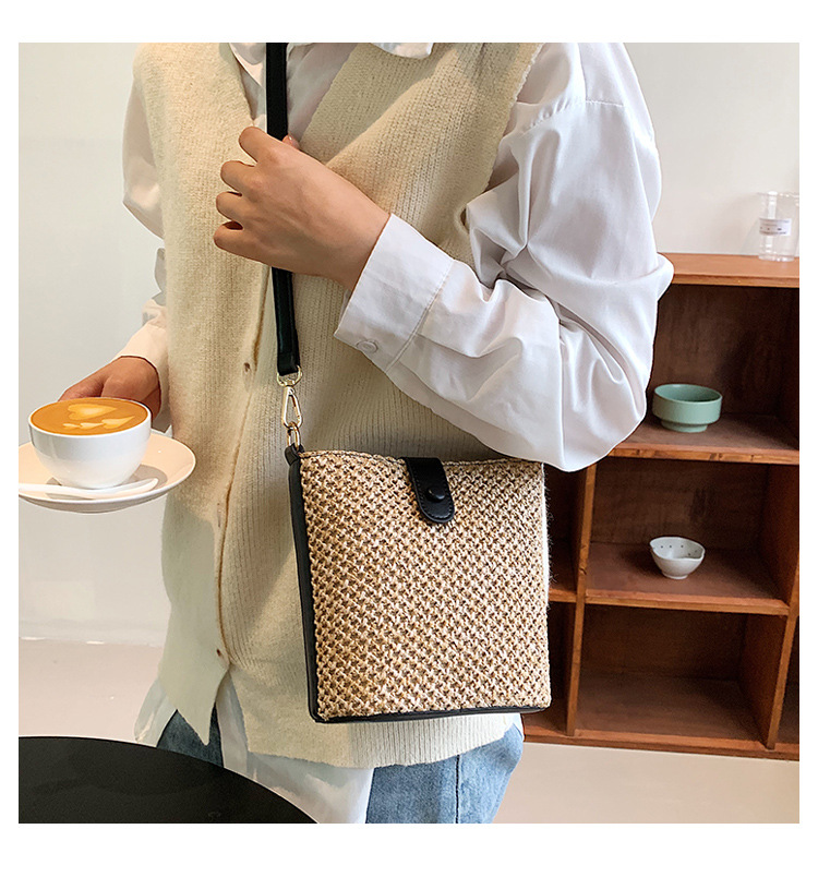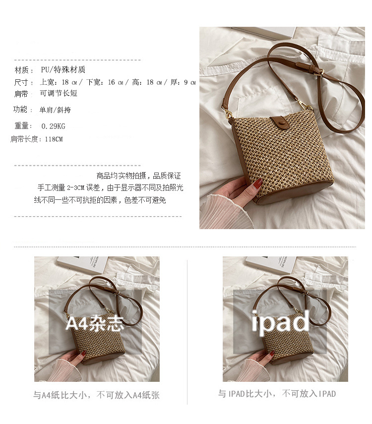 2024 새로운 패션 패션 어깨 가방 여름 밀짚 작은 가방 여성용 버킷 가방 캐주얼 짠 크로스 바디 여성용 가방스토어 가기