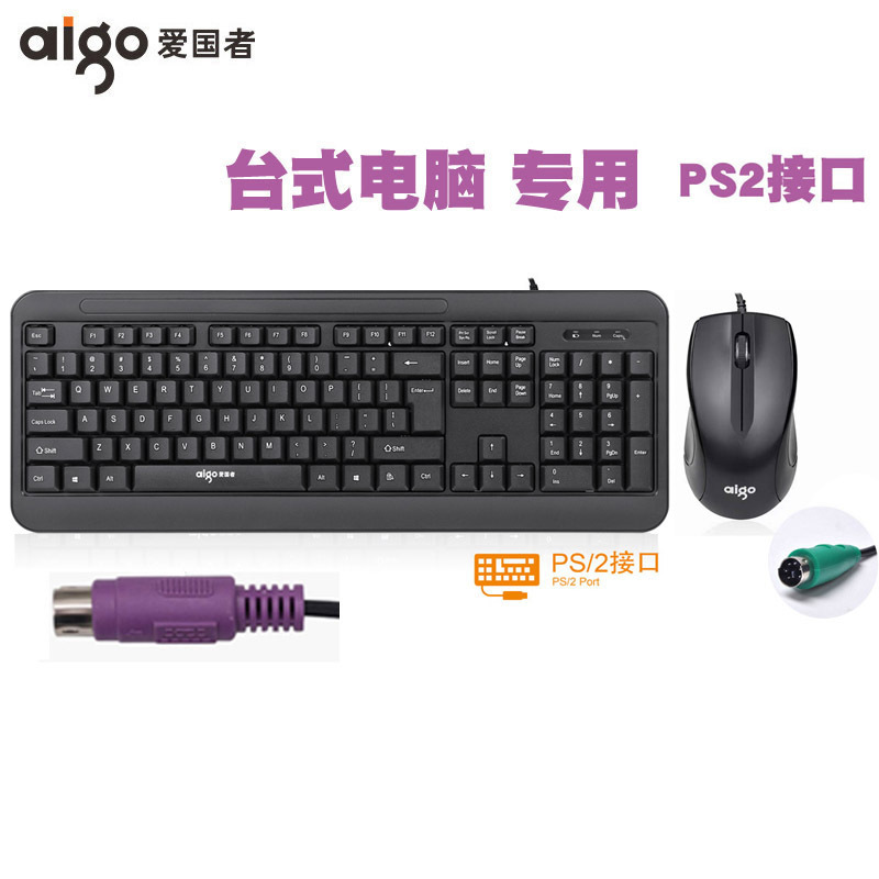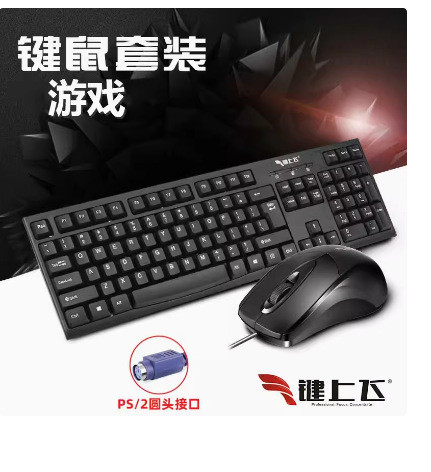 구식 컴퓨터 키보드 둥근 구멍 키보드 및 마우스 세트 유선 일반 사무실 컴퓨터 설치 키보드 및 마우스 세트 도매스토어 가기