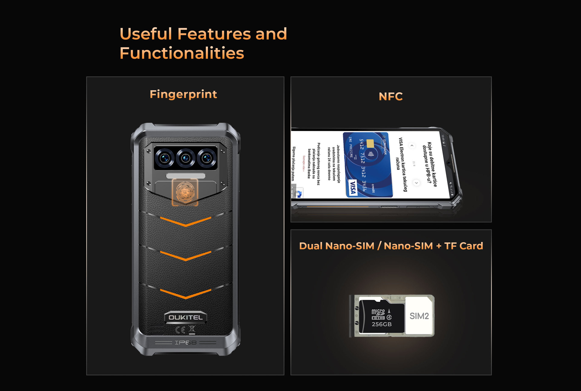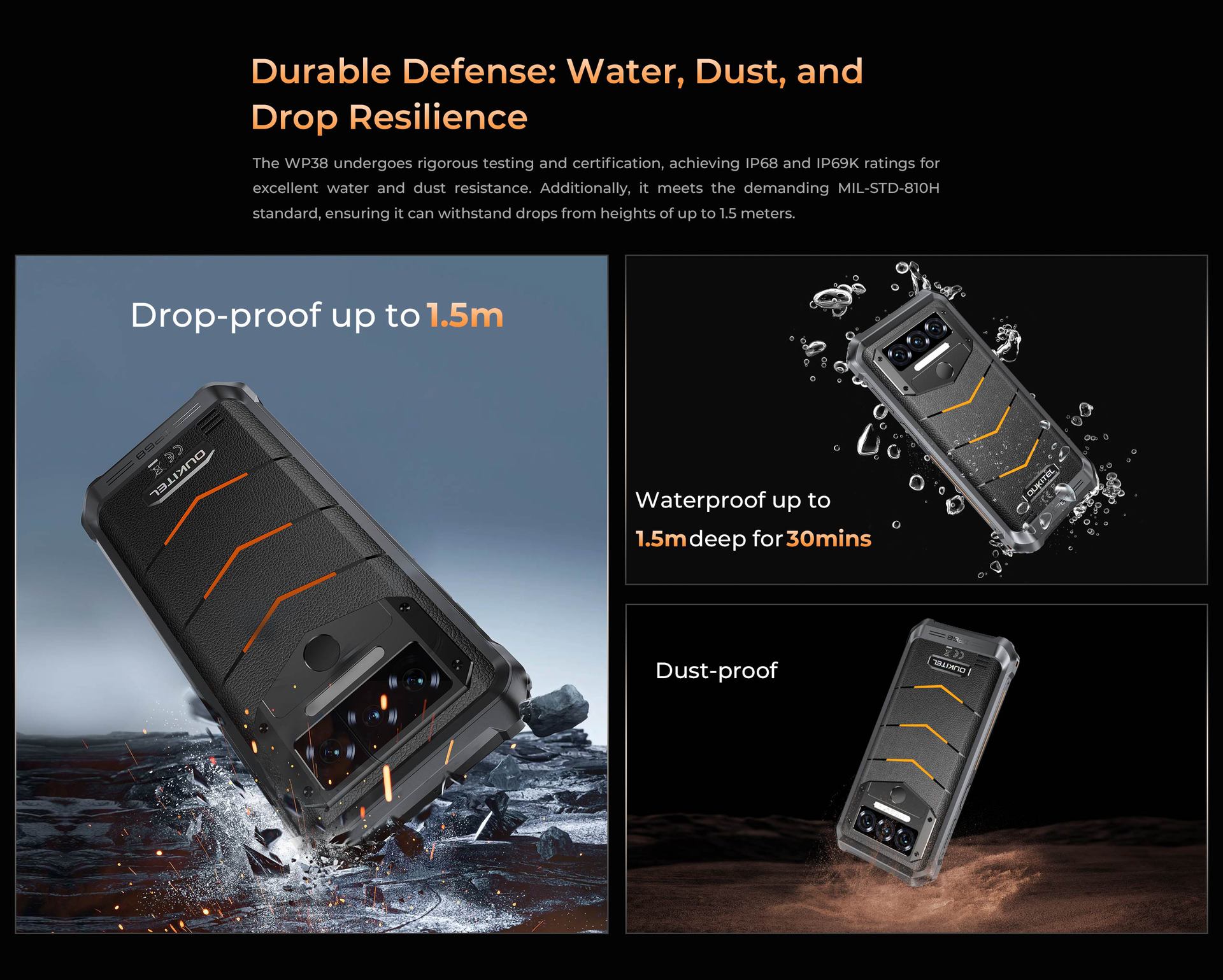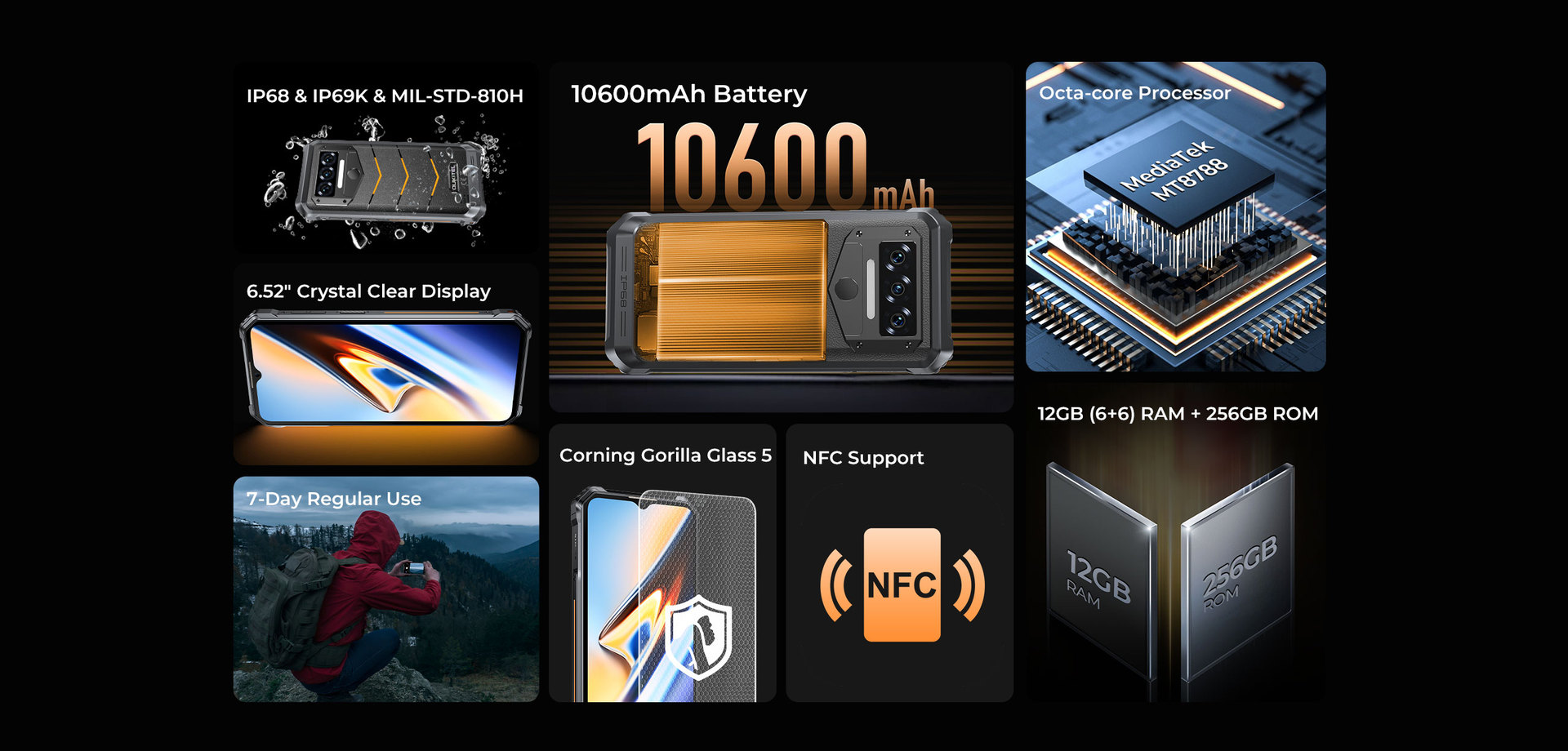Ouqi WP38 6.52 "6 256G 10600mAh NFC 4G 8 핵 3 방지 휴대 전화