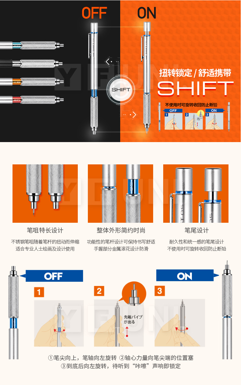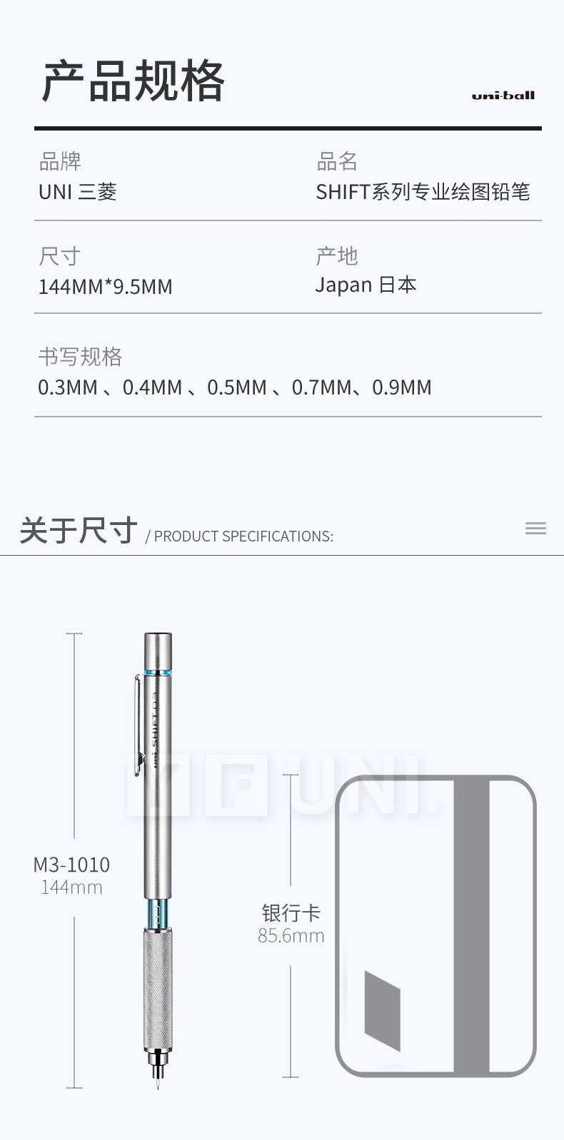 미쓰비시 자동 연필 M5-1010 드로잉 펜 0.4/ 0.5mm 낮은 중심 무거운 손 예술 드로잉 금속스토어 가기