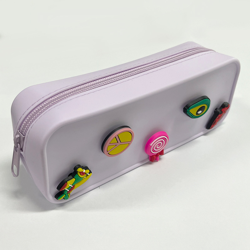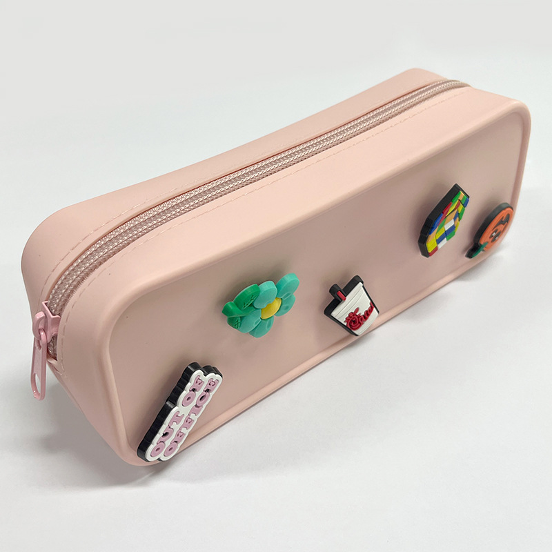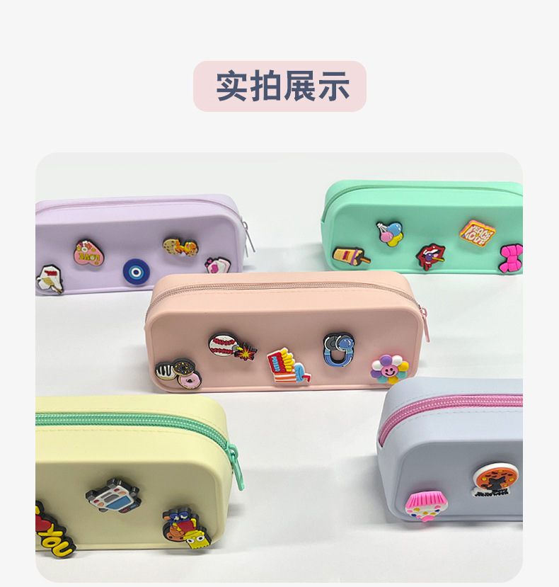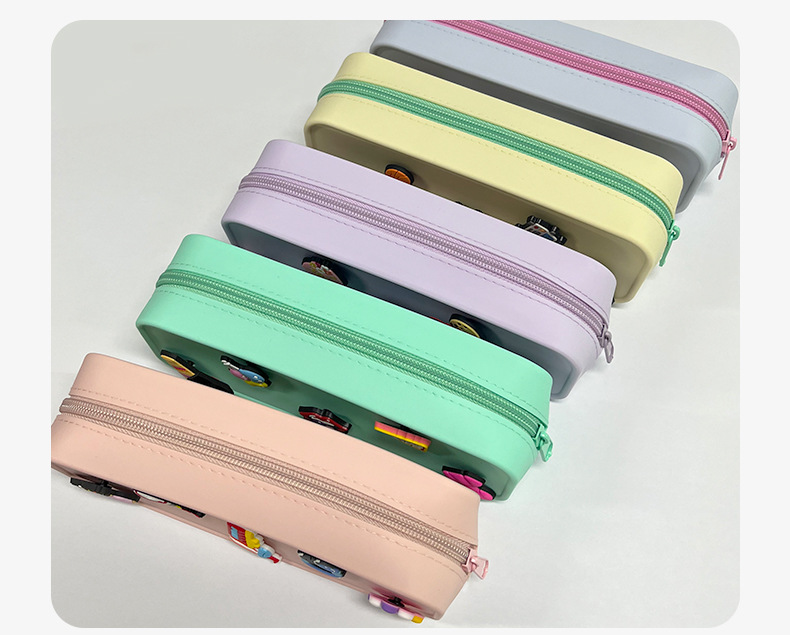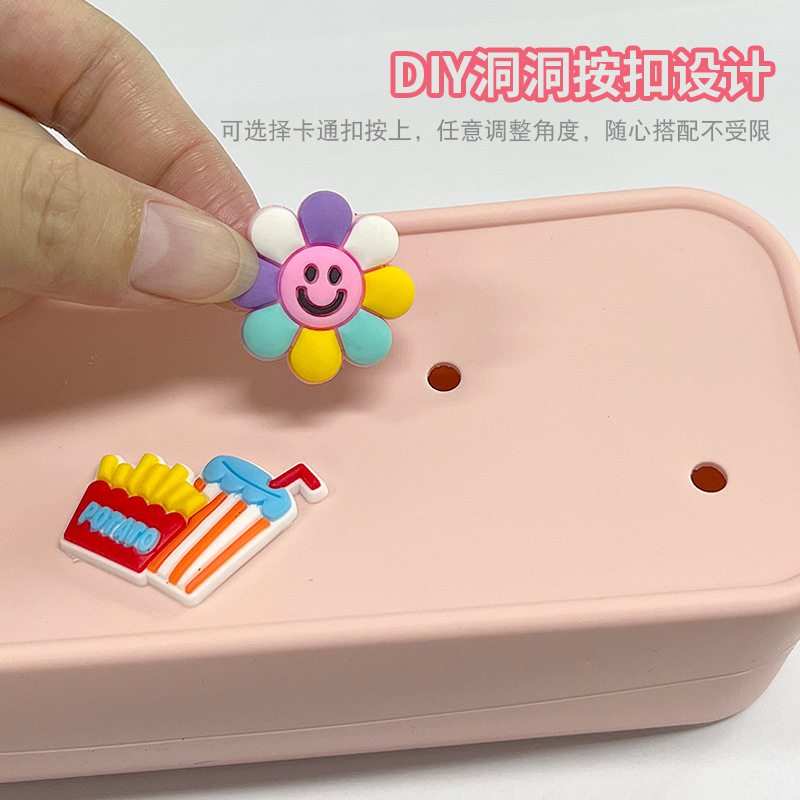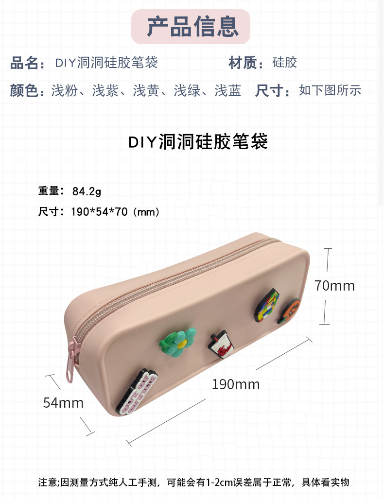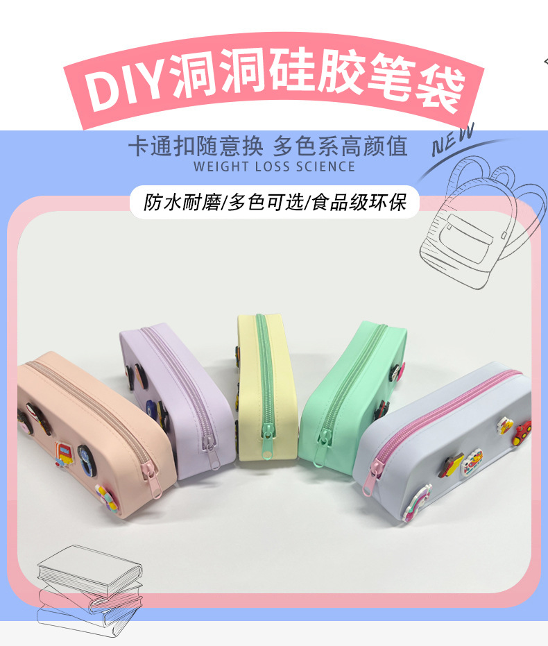 DIY 구멍이 있는 실리콘 필통 귀여운 학생용 지퍼 실리콘 가방 필통 실리콘 화장품 가방 실리콘 수납 가방