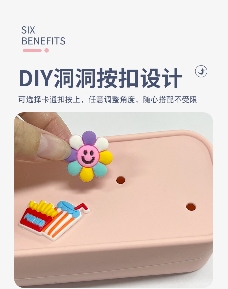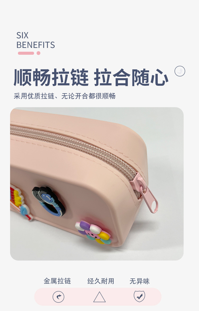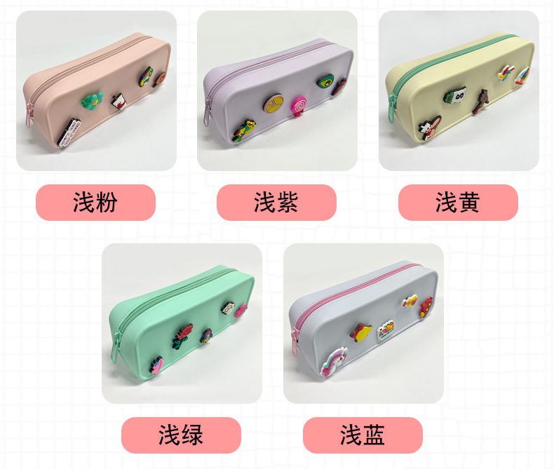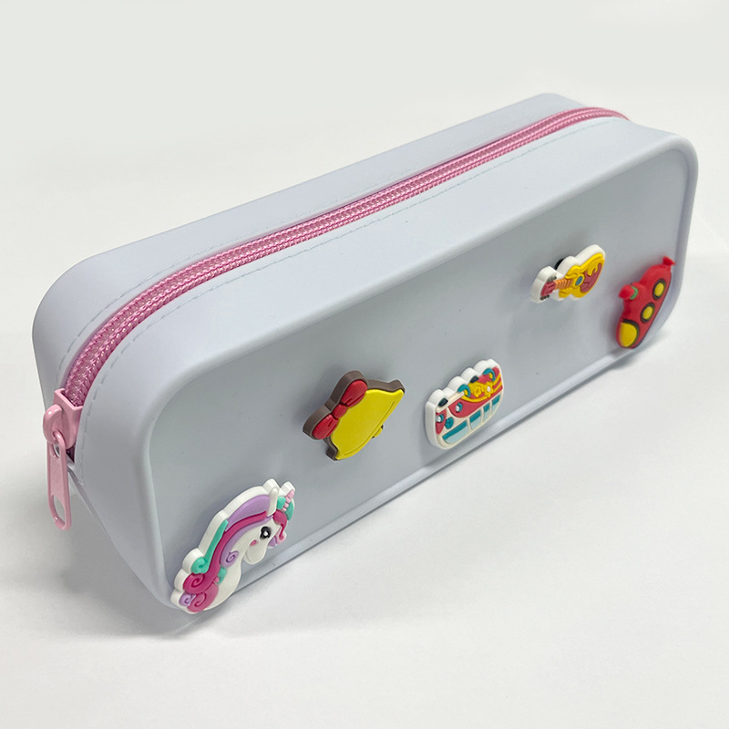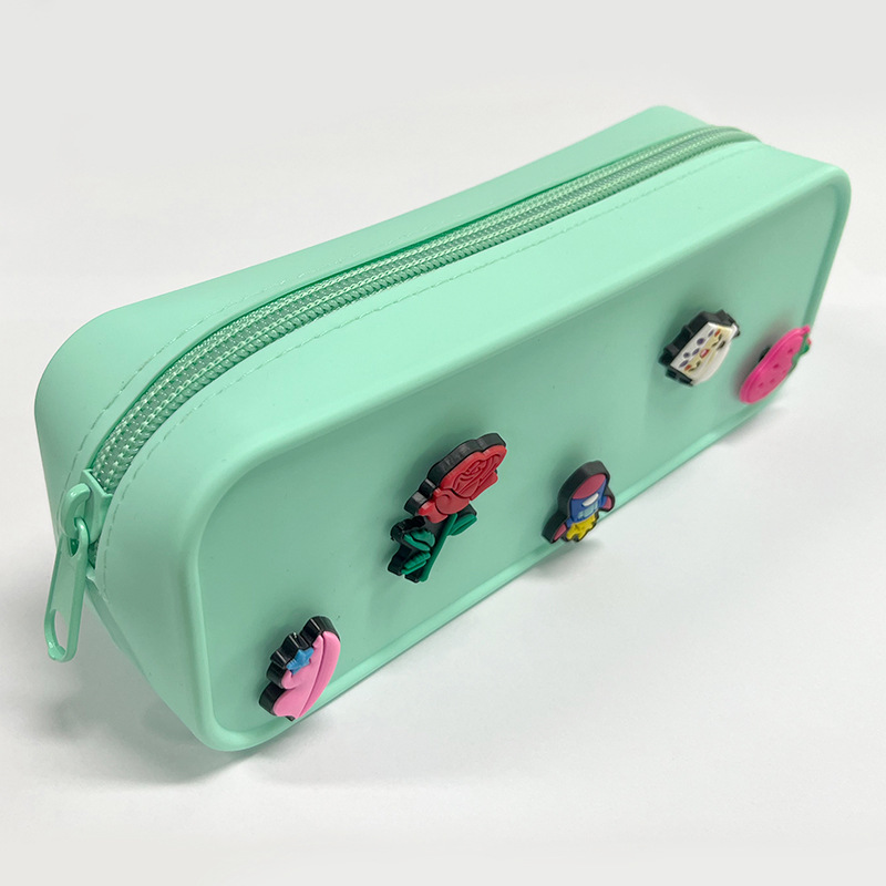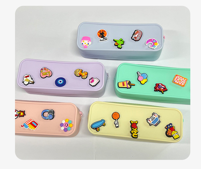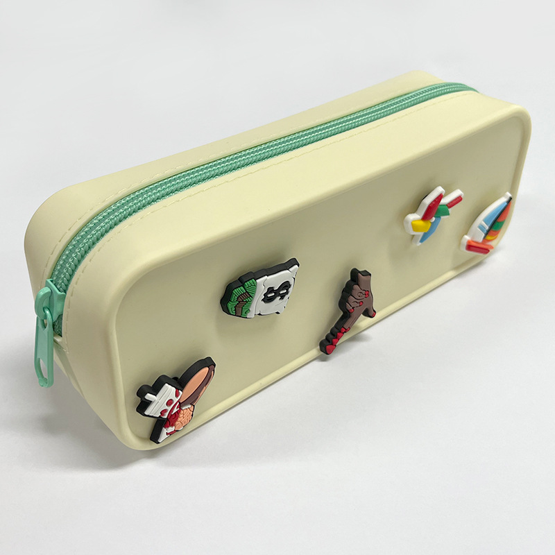 DIY 구멍이 있는 실리콘 필통 귀여운 학생용 지퍼 실리콘 가방 필통 실리콘 화장품 가방 실리콘 수납 가방