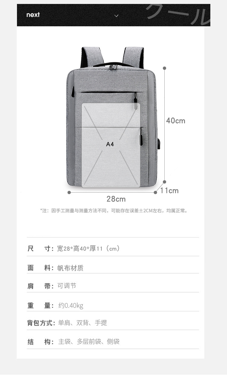 국경 간 공급 간단한 배낭 Usb 충전 남성 컴퓨터 가방 대용량 캐주얼 비즈니스 노트북 배낭