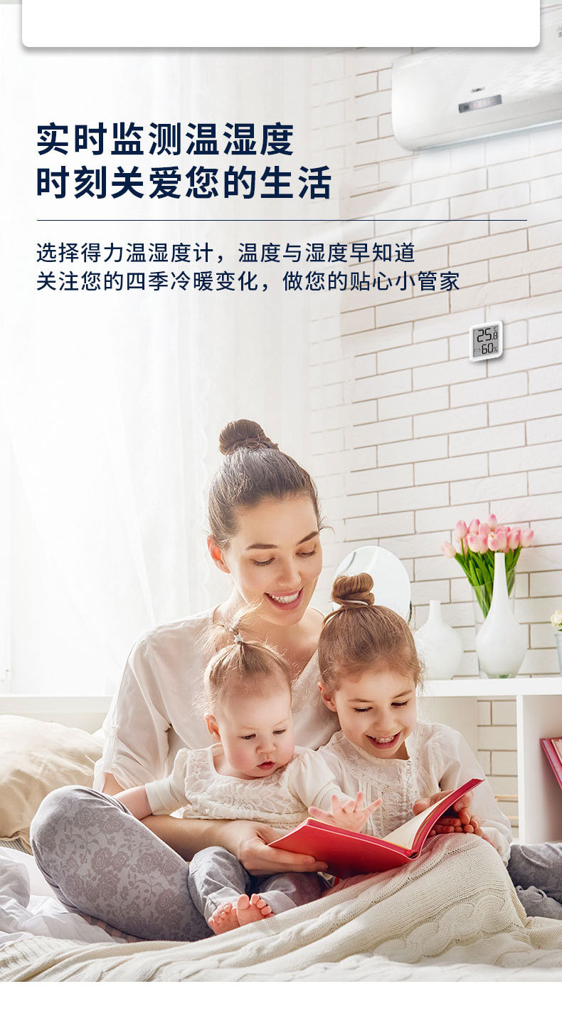 델리 8845ES 전자 온도 및 습도 측정기 미니 고정밀 디지털 디스플레이 실내 홈 베이비 룸 벽 장착 온도계