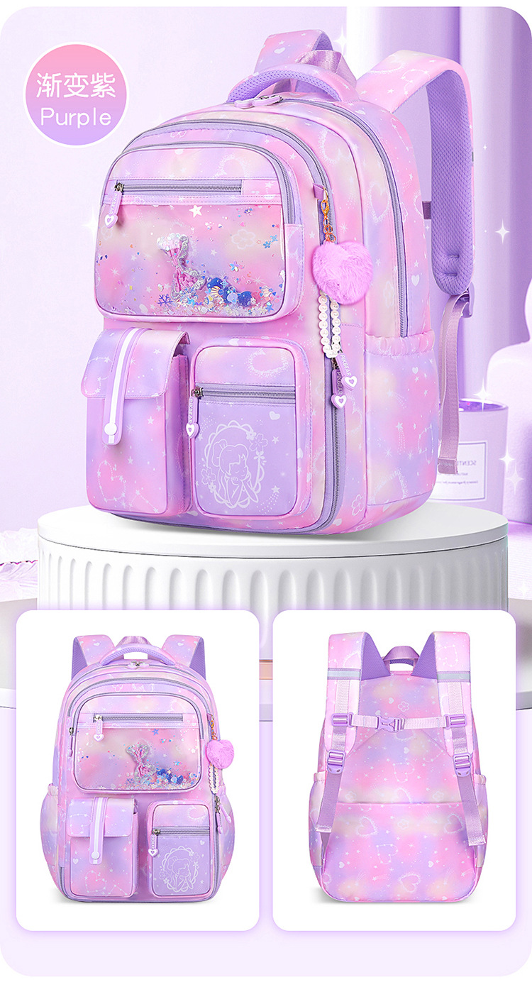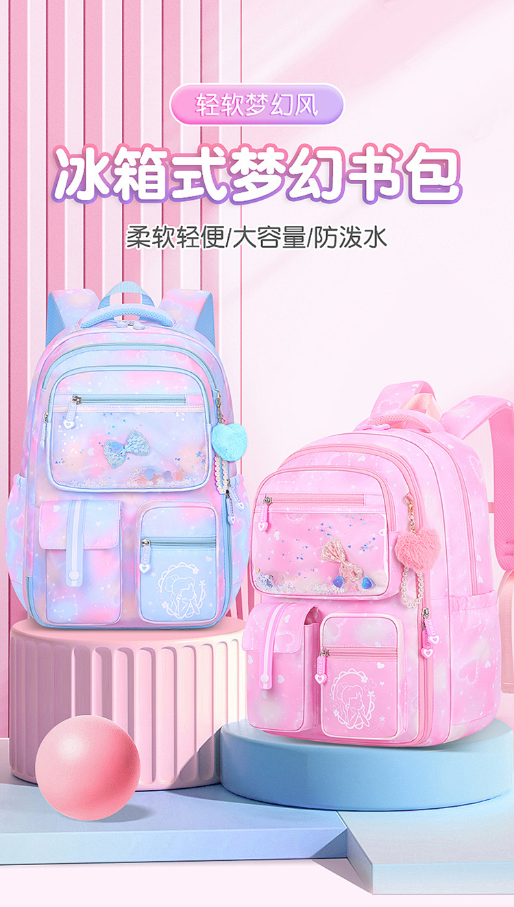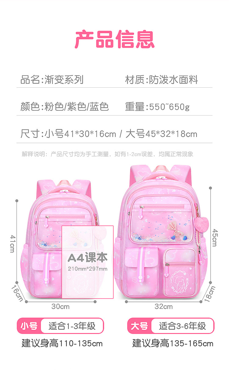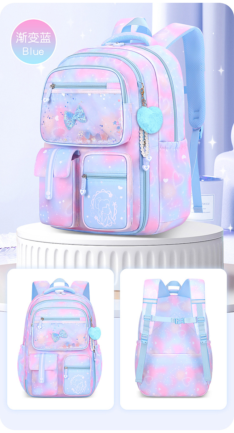 초등 학교 학교 가방 여자 123 학년에서 56 학년 그라디언트 컬러 경량 어린이를위한 대용량 배낭