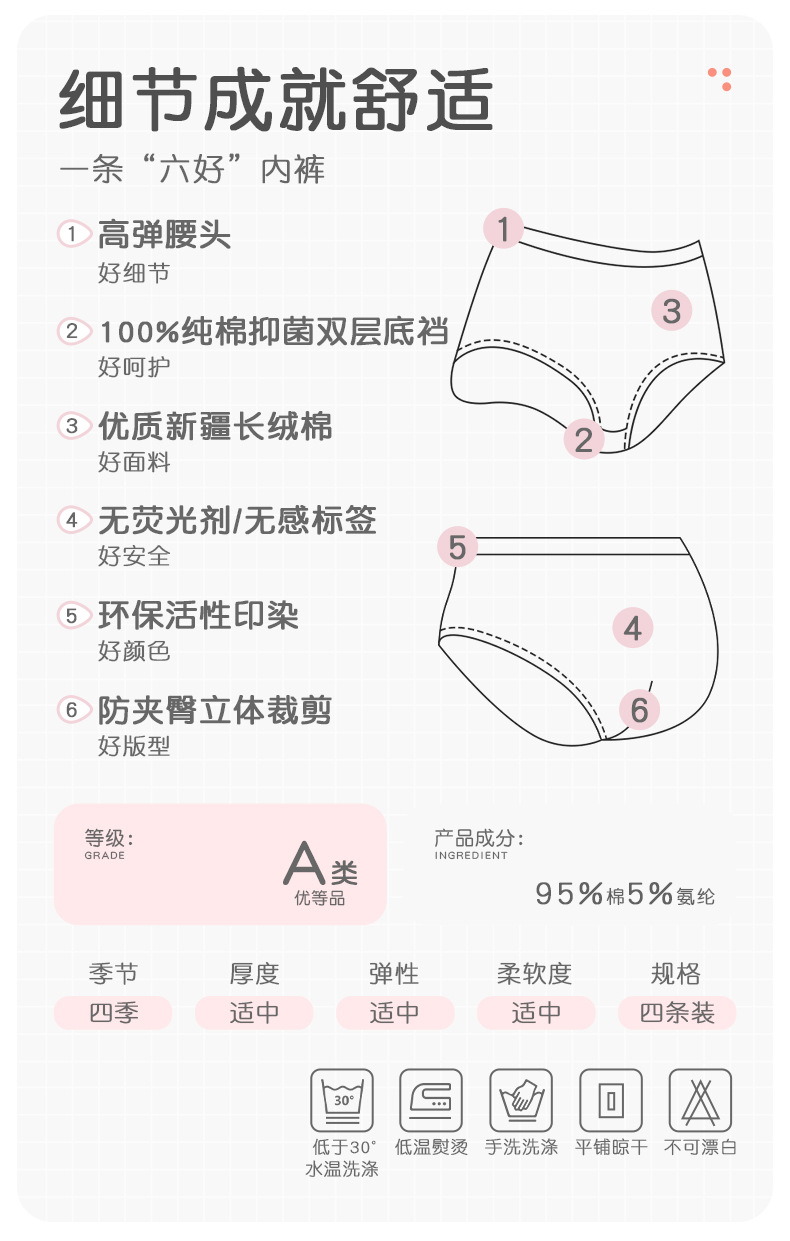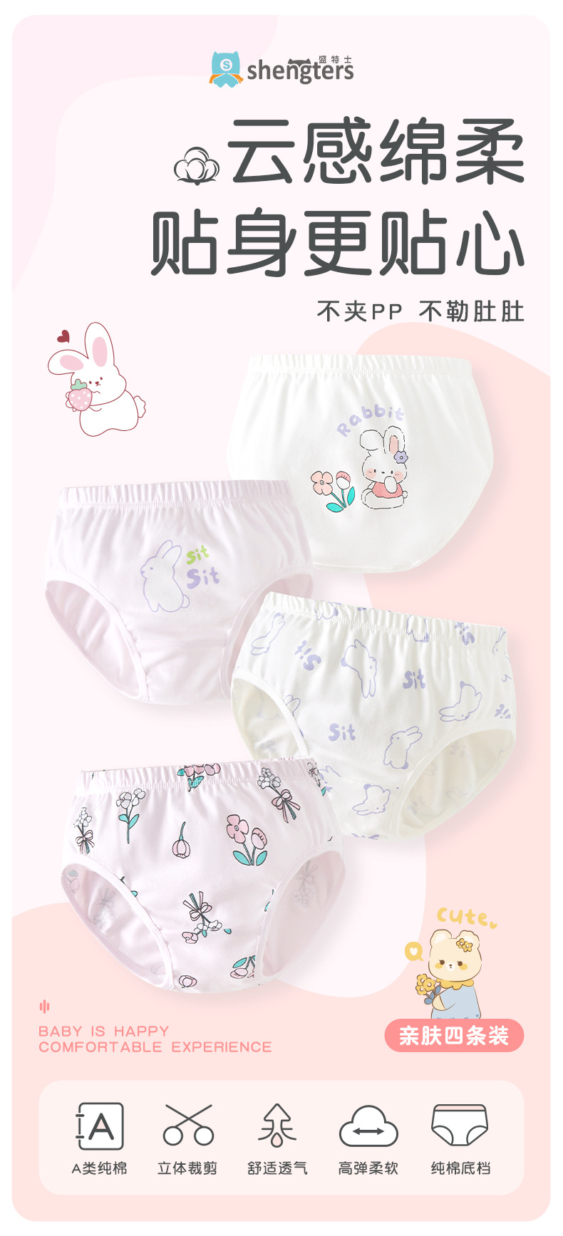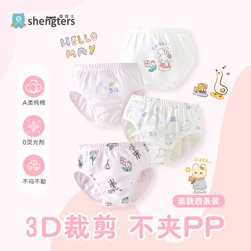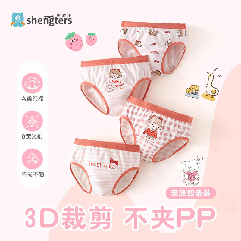 셩테시 순면 여아 팬티, 여자 아기 삼각팬티, 어린이 여아용 반바지, 엉덩이 꼬임 없음, 항균, 4종 세트스토어 가기
