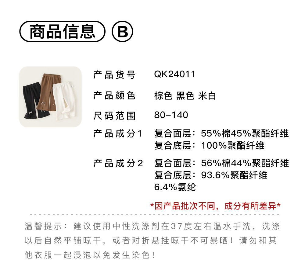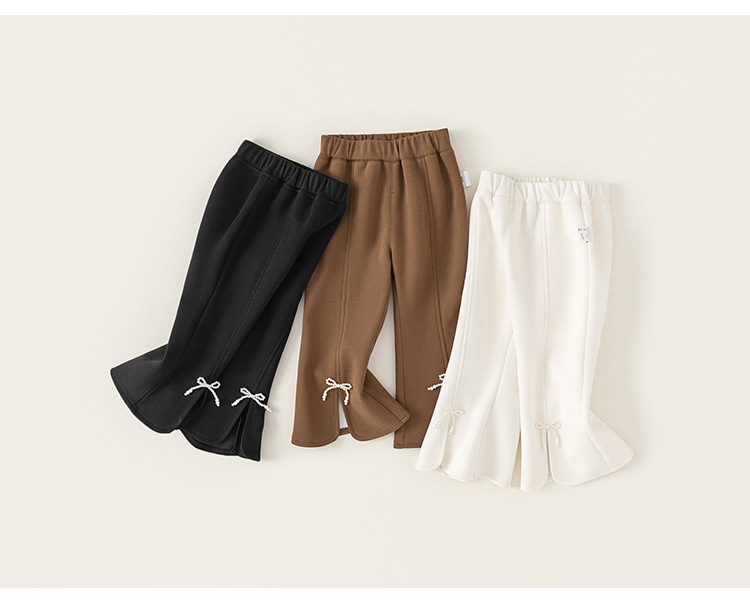 유바오 아동복 여아 리본 플레어 팬츠 가을 스타일 아동 슬림핏 베이비 팬츠 외출용 세련된 여아 바지