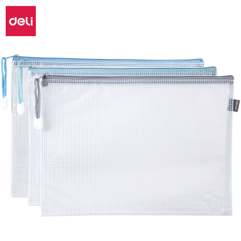 델리 63450 지퍼 가방 A4 투명 메쉬 지퍼 가방 방수 종이 가방 테스트 종이 저장 가방 pvc 지폐 가방